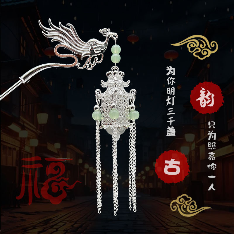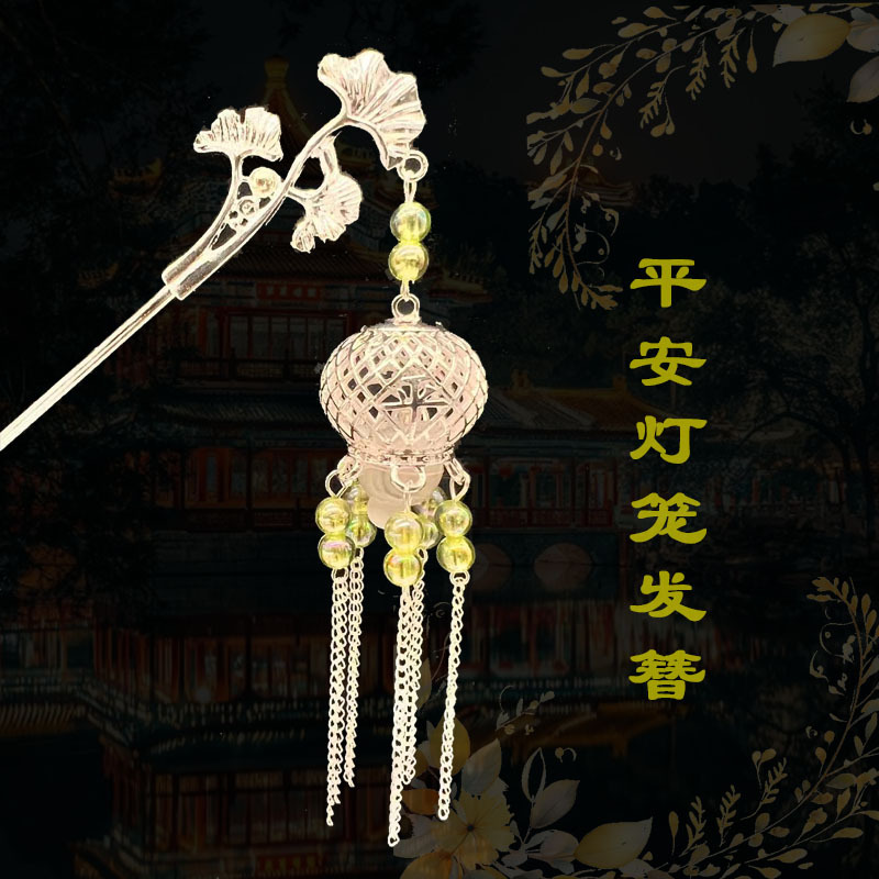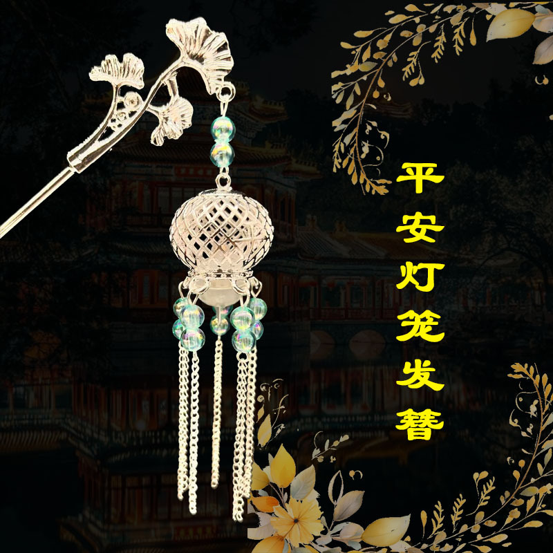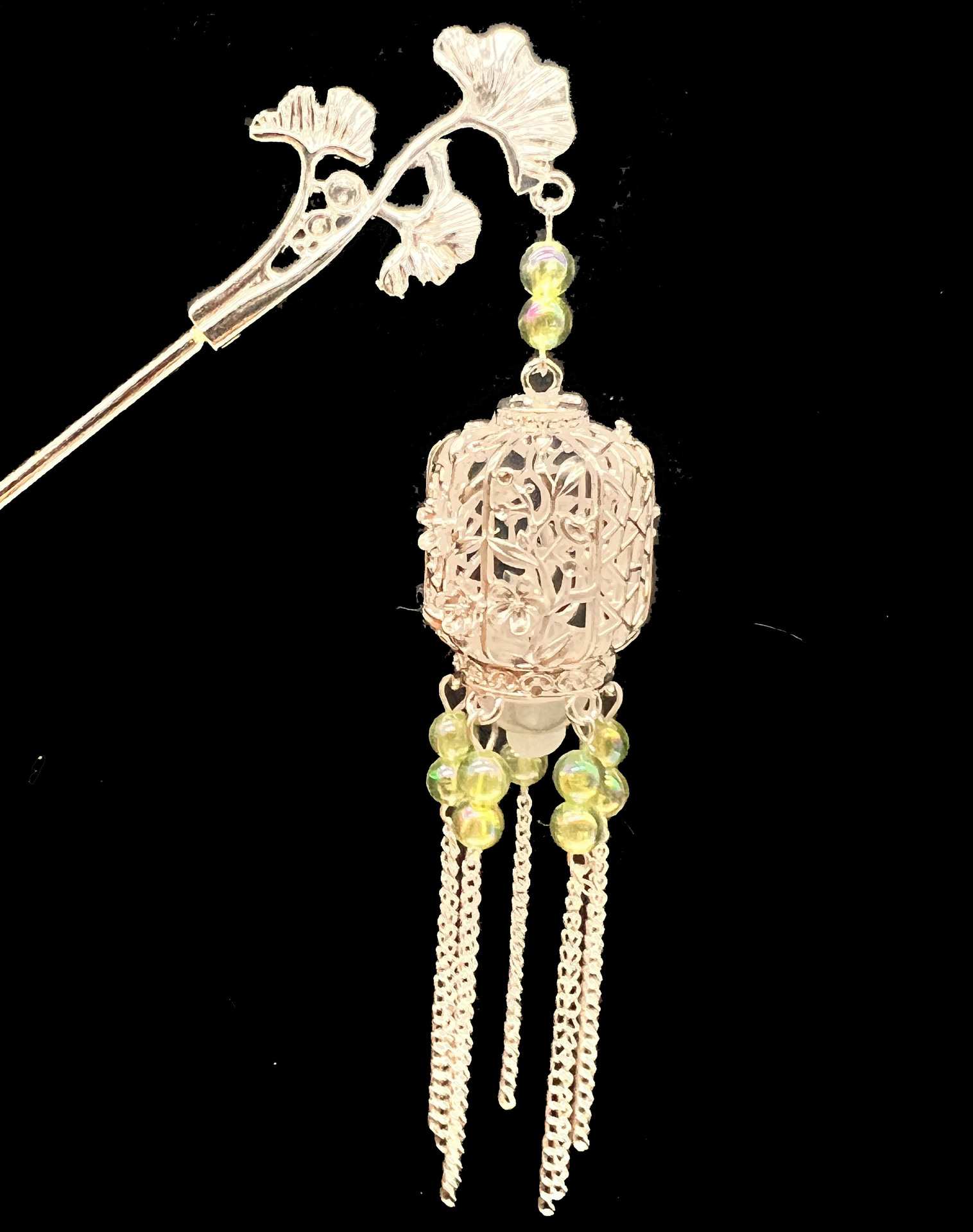 silver-green beads-plum lamp hairpin