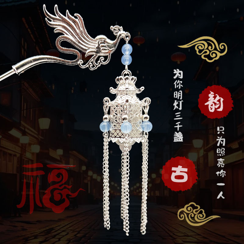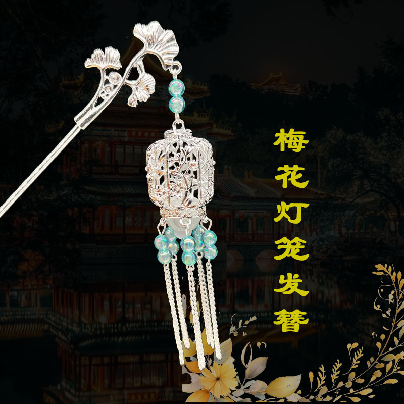 silver-blue beads-plum lamp hairpin