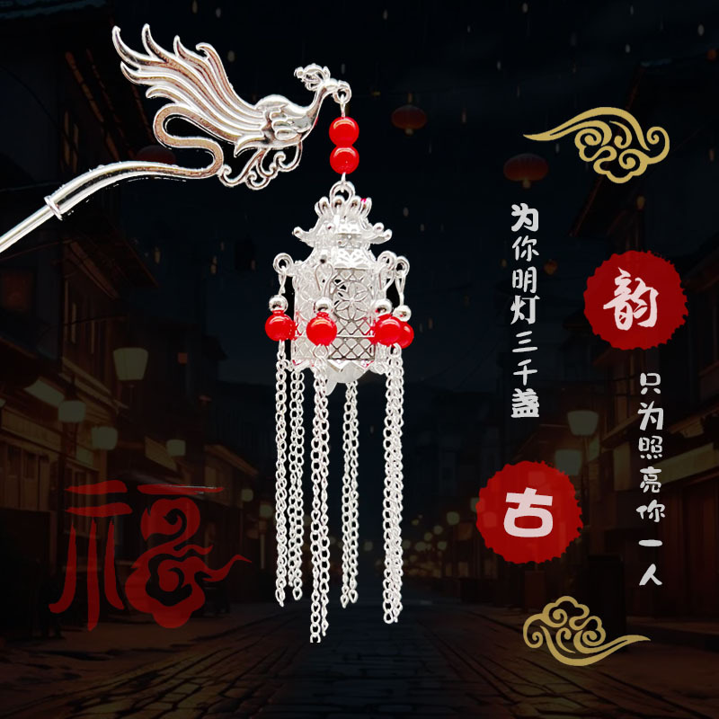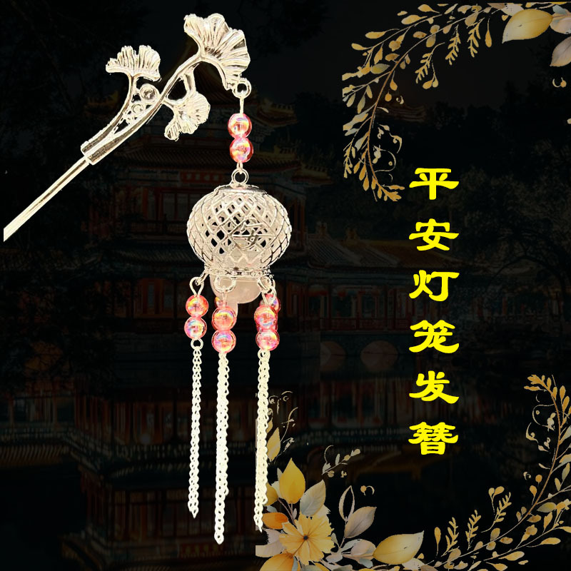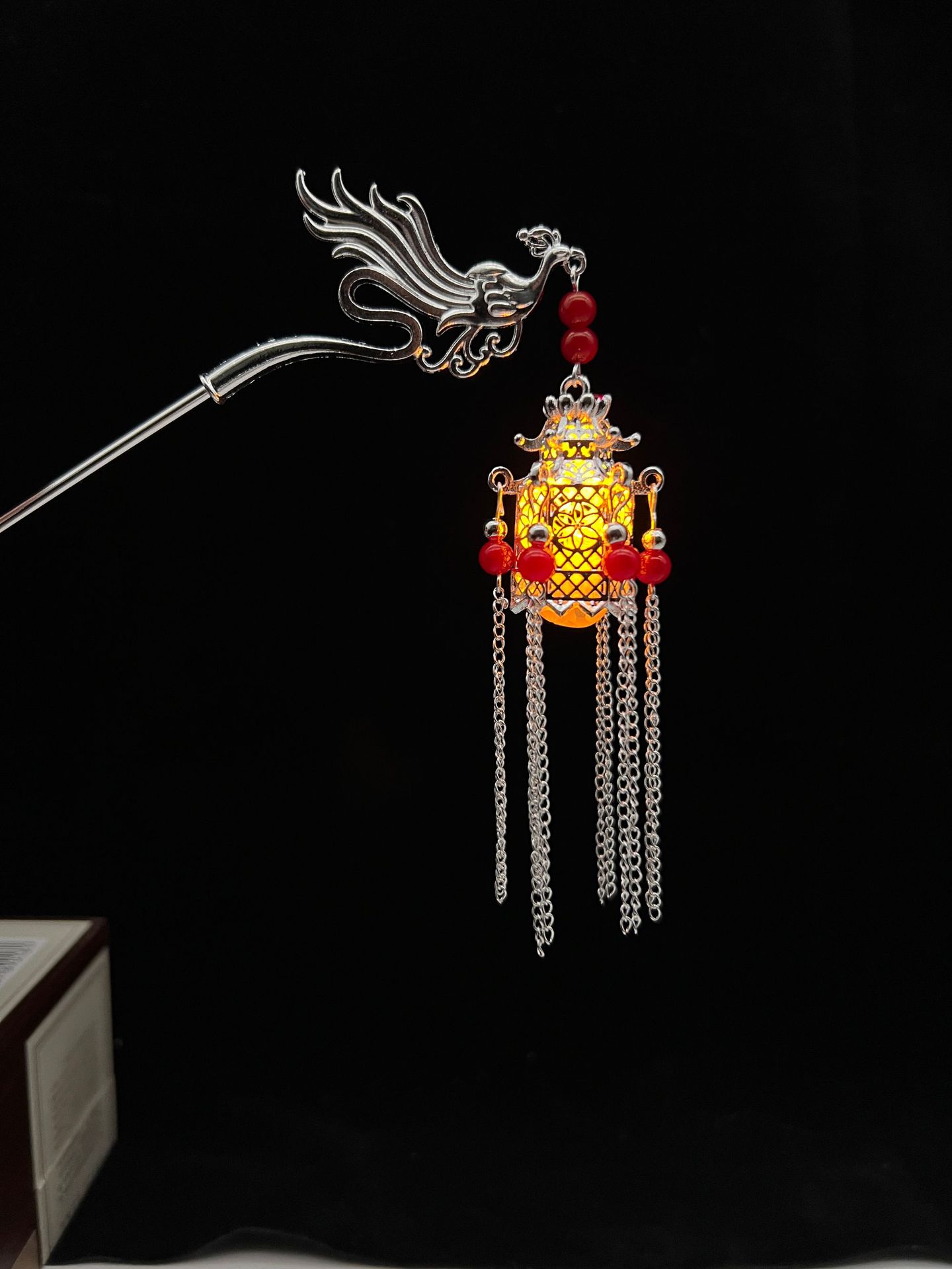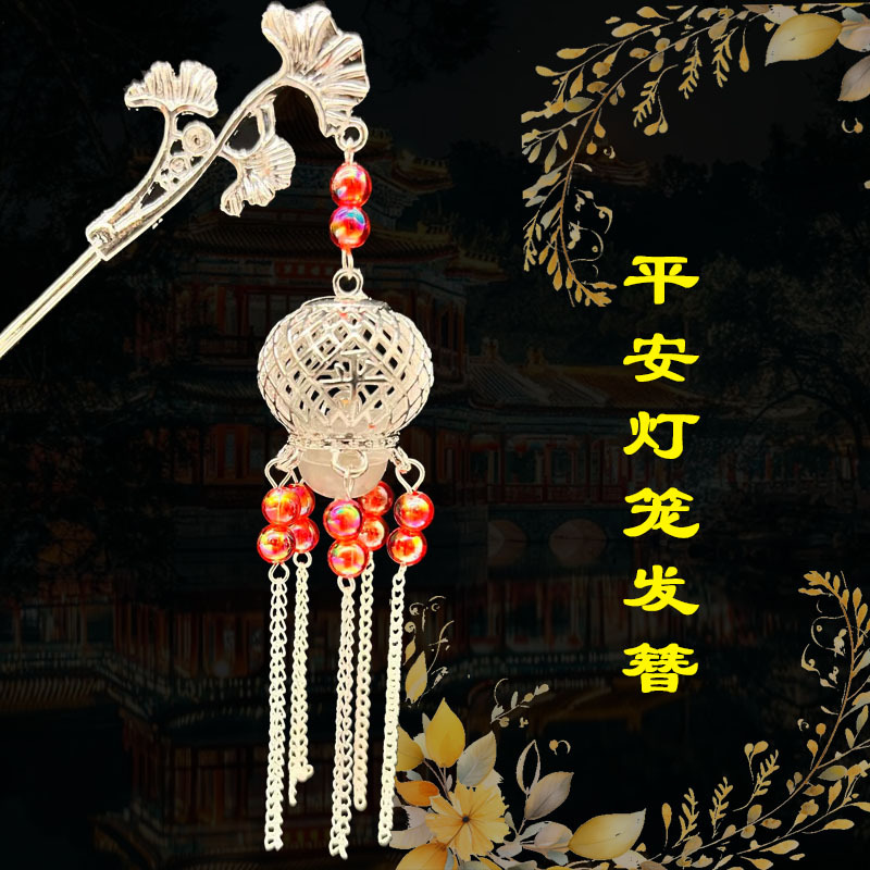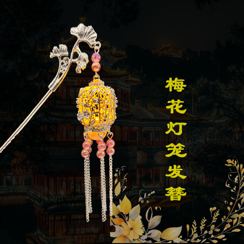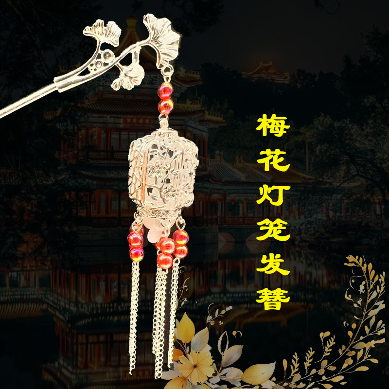 silver-red beads-plum lamp hairpin