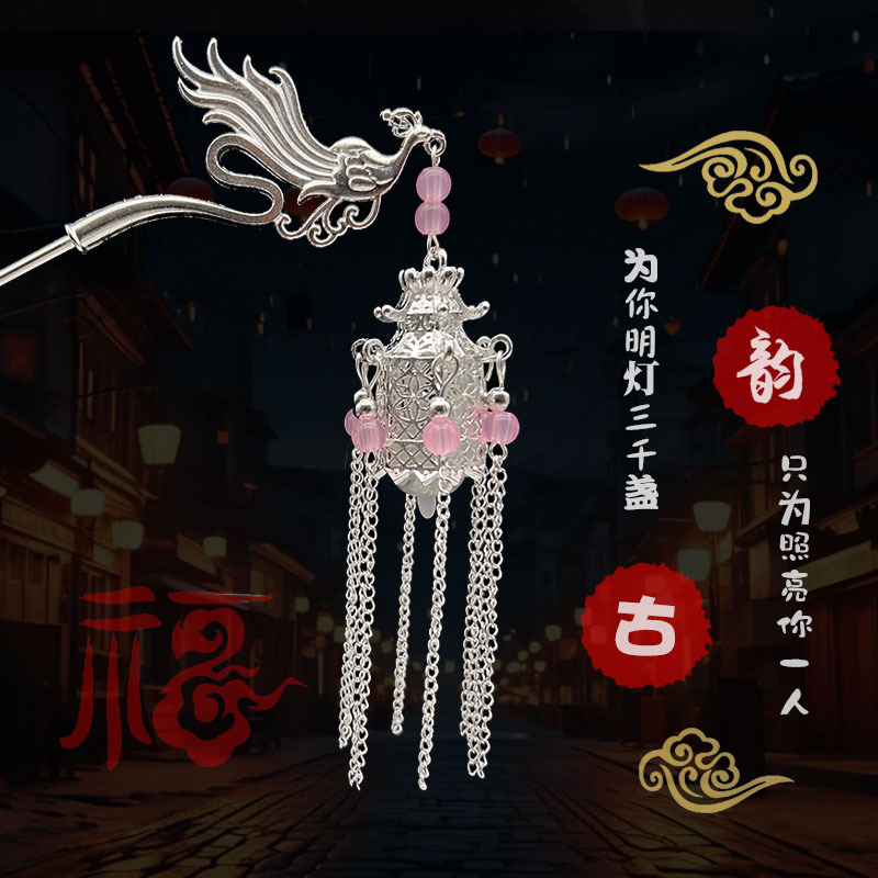 silver-pink beads-plum lamp hairpin