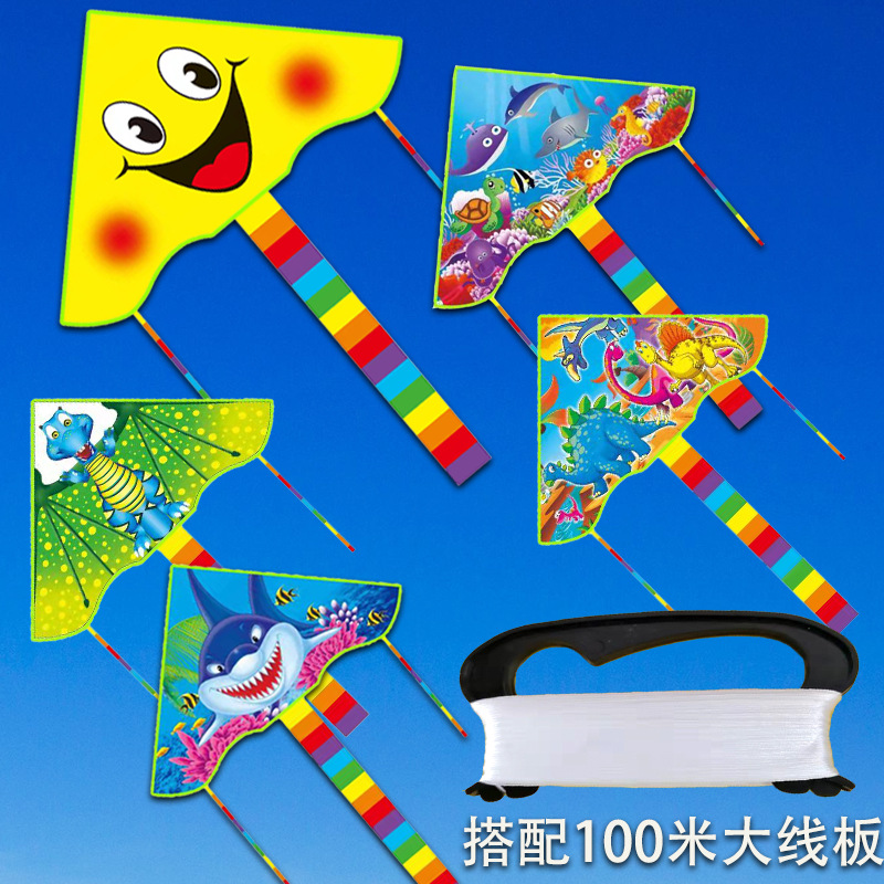 small curved cartoon kite with 100 m line board