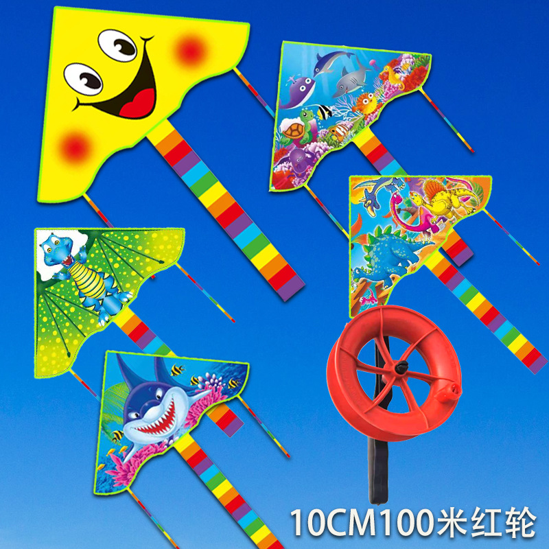 small curved cartoon kite with 10cm100 m line small red wheel