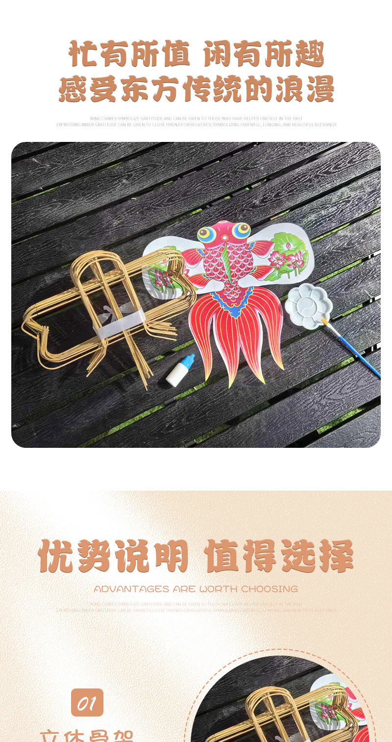 9cm colored noodles goldfish kite fabric skeleton with glue separately