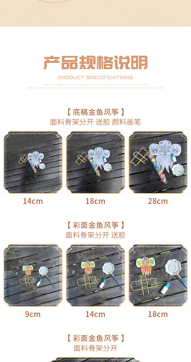 14cm colored noodles goldfish kite fabric skeleton with glue separately