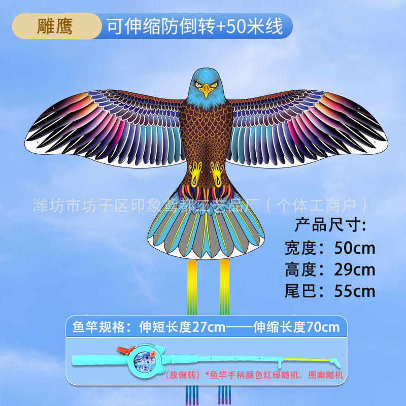 [35cm dynamic no. 42] carved eagle + macaron telescopic fishing rod with line