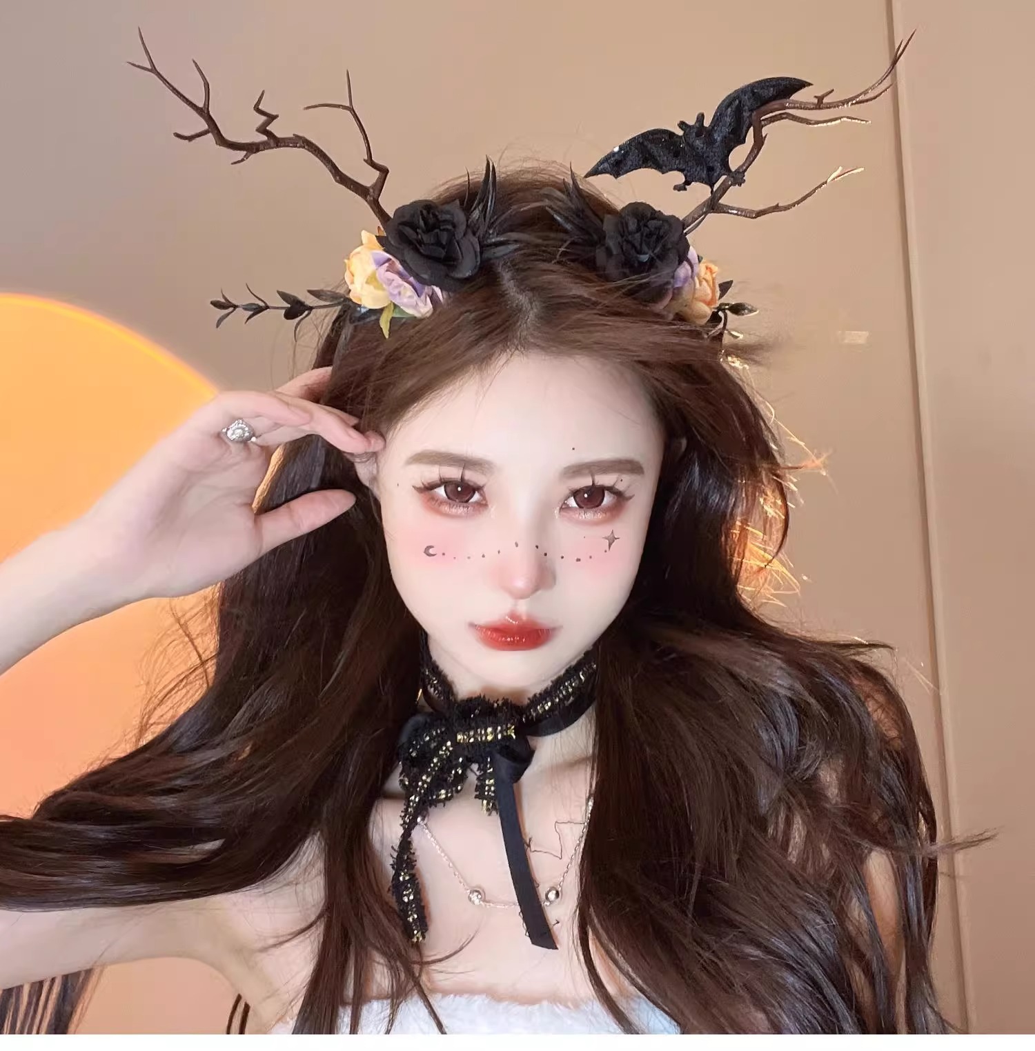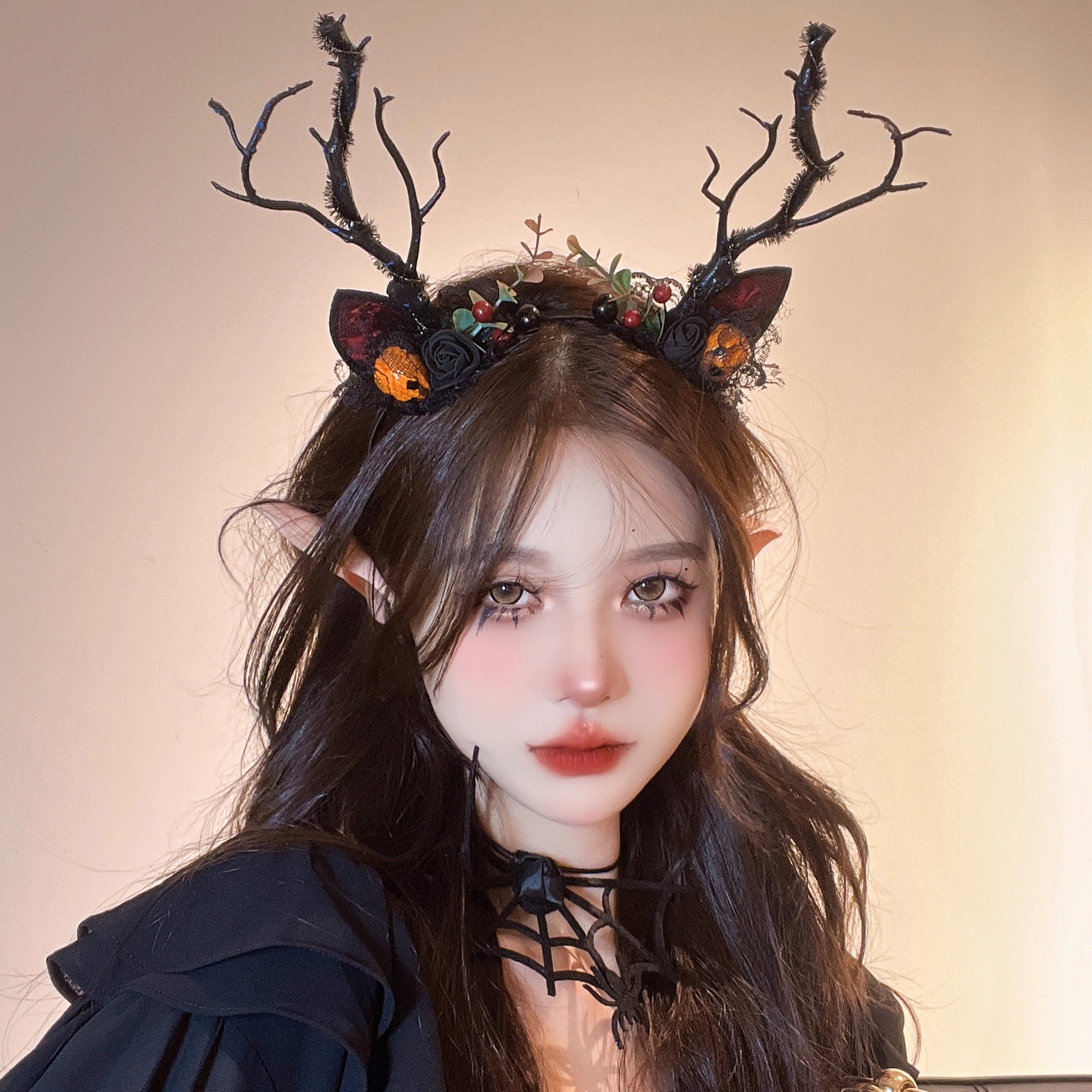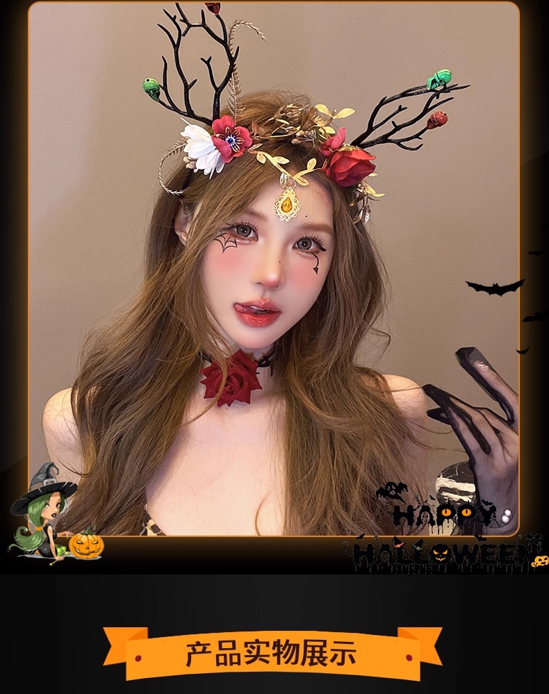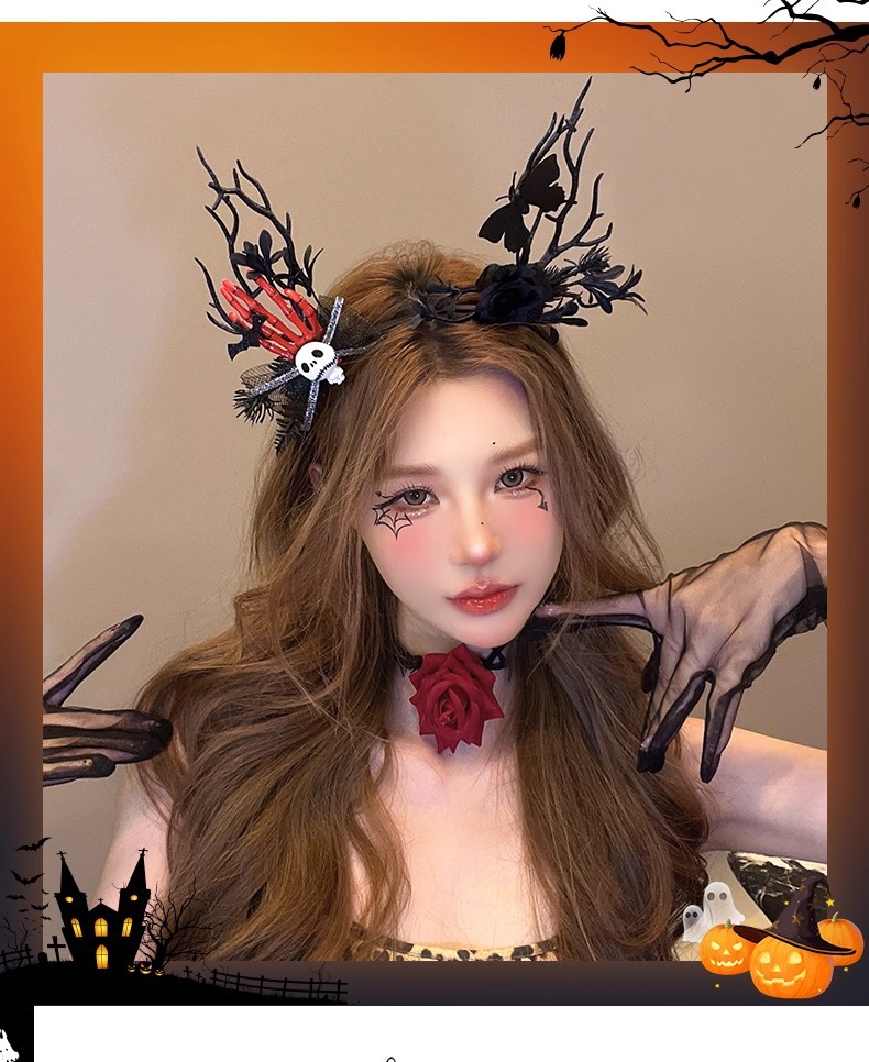 15# skull bell big antlers lace headband
