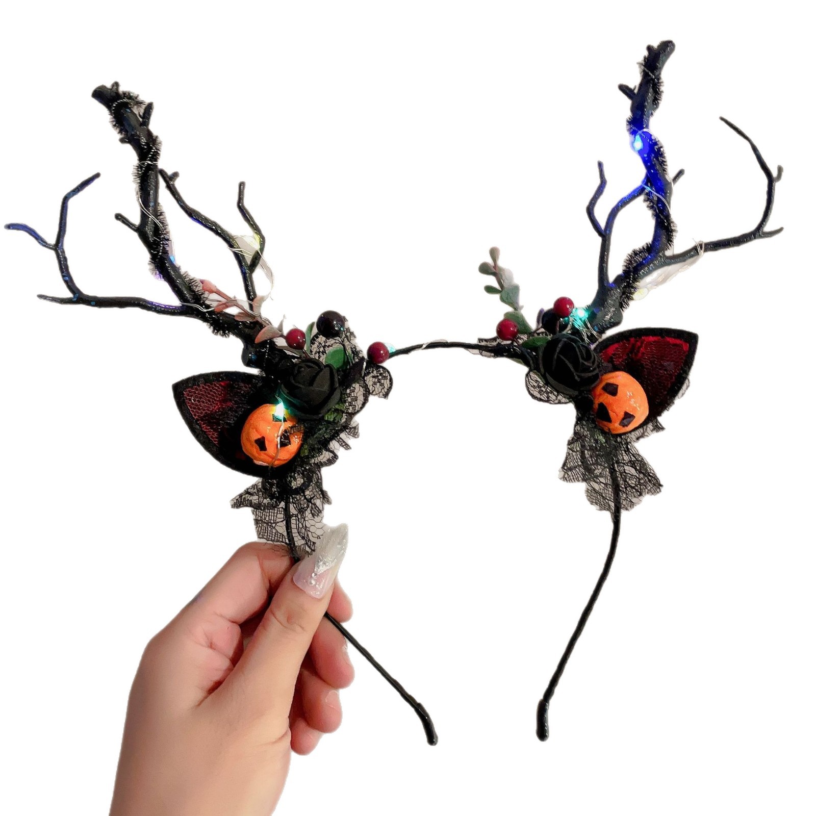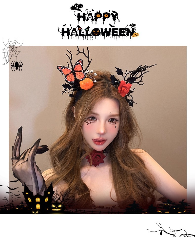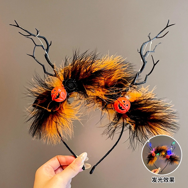 37# halloween branch headband-evil pumpkin head [with lights]]