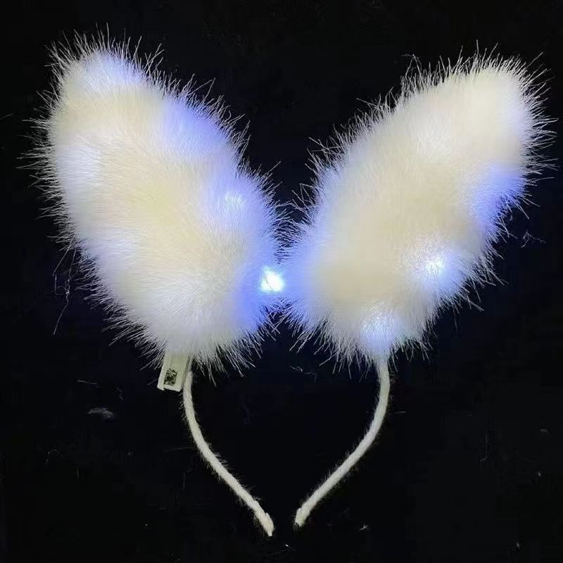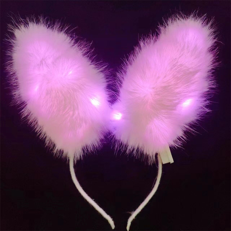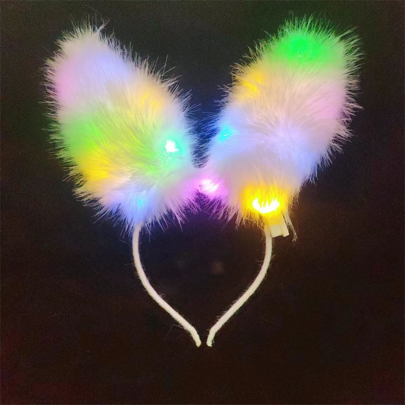 white fur rabbit ears hair hoop colored lights