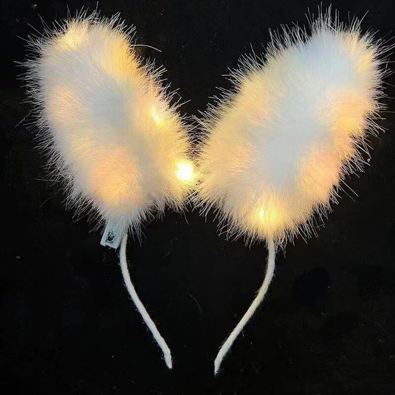 white fur rabbit ears hair hoop warm lamp