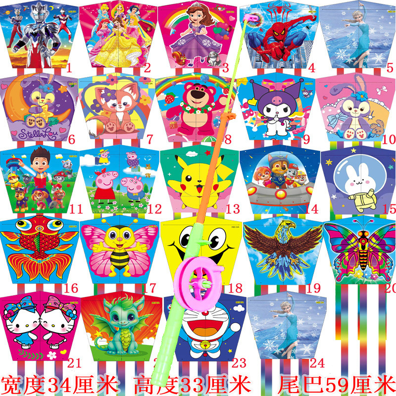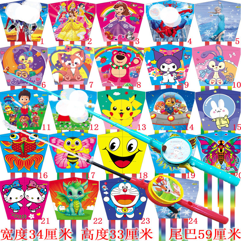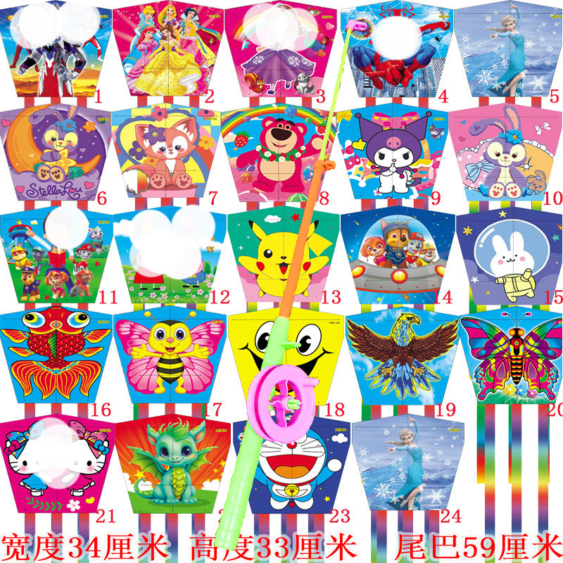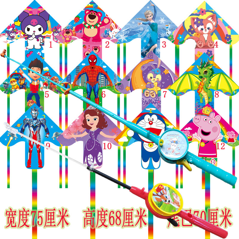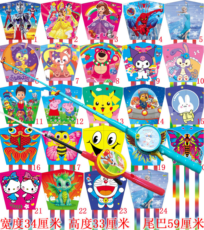 square piece kite + macaron fishing rod