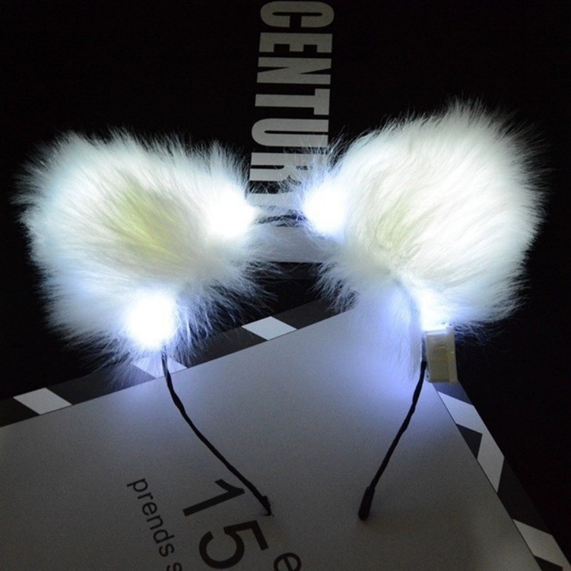 14 lights fox fur headband-white colored lights