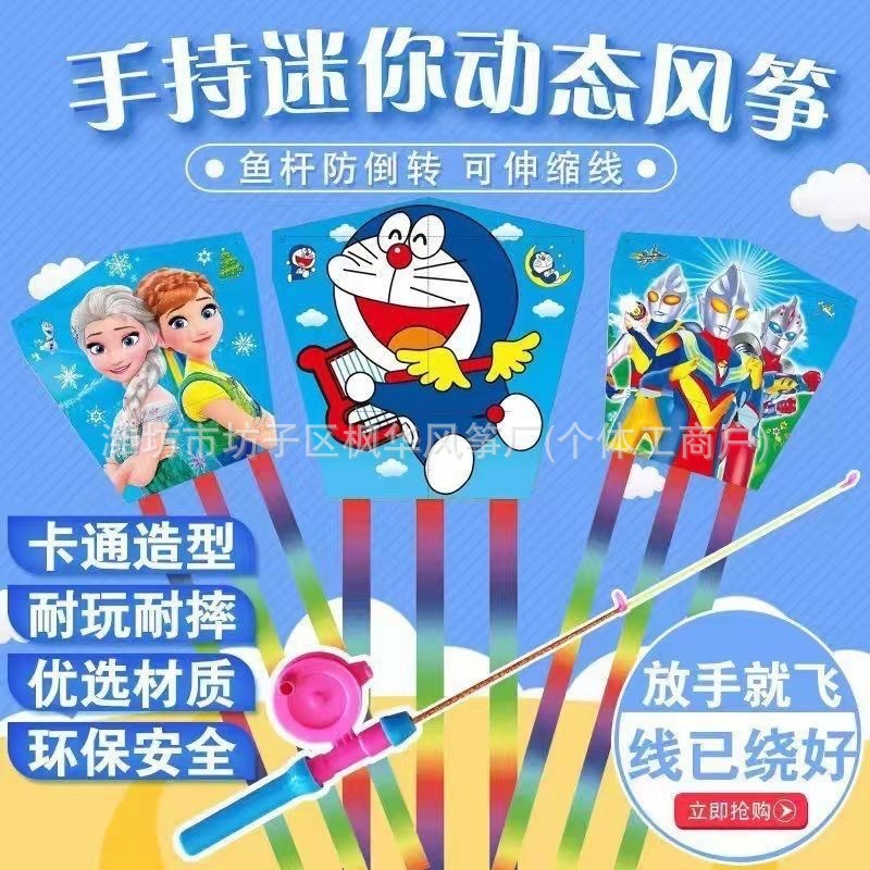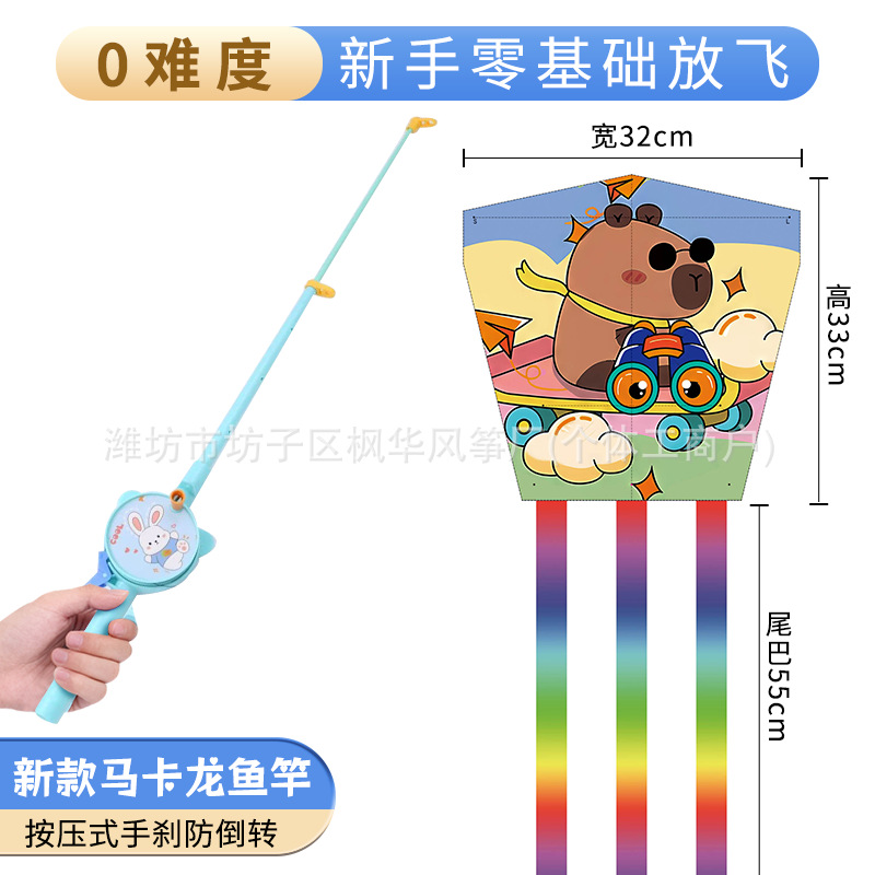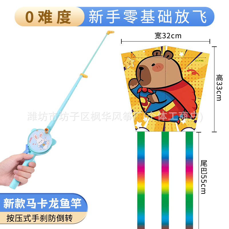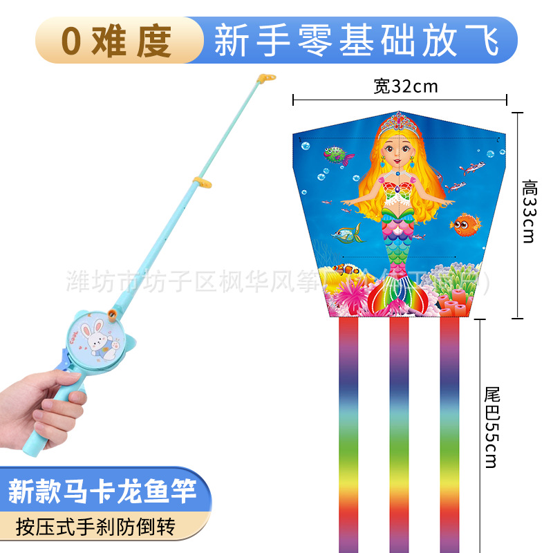 more than 40 mixed hair square piece fishing rod kite +50 m macaron fishing rod (foldable)