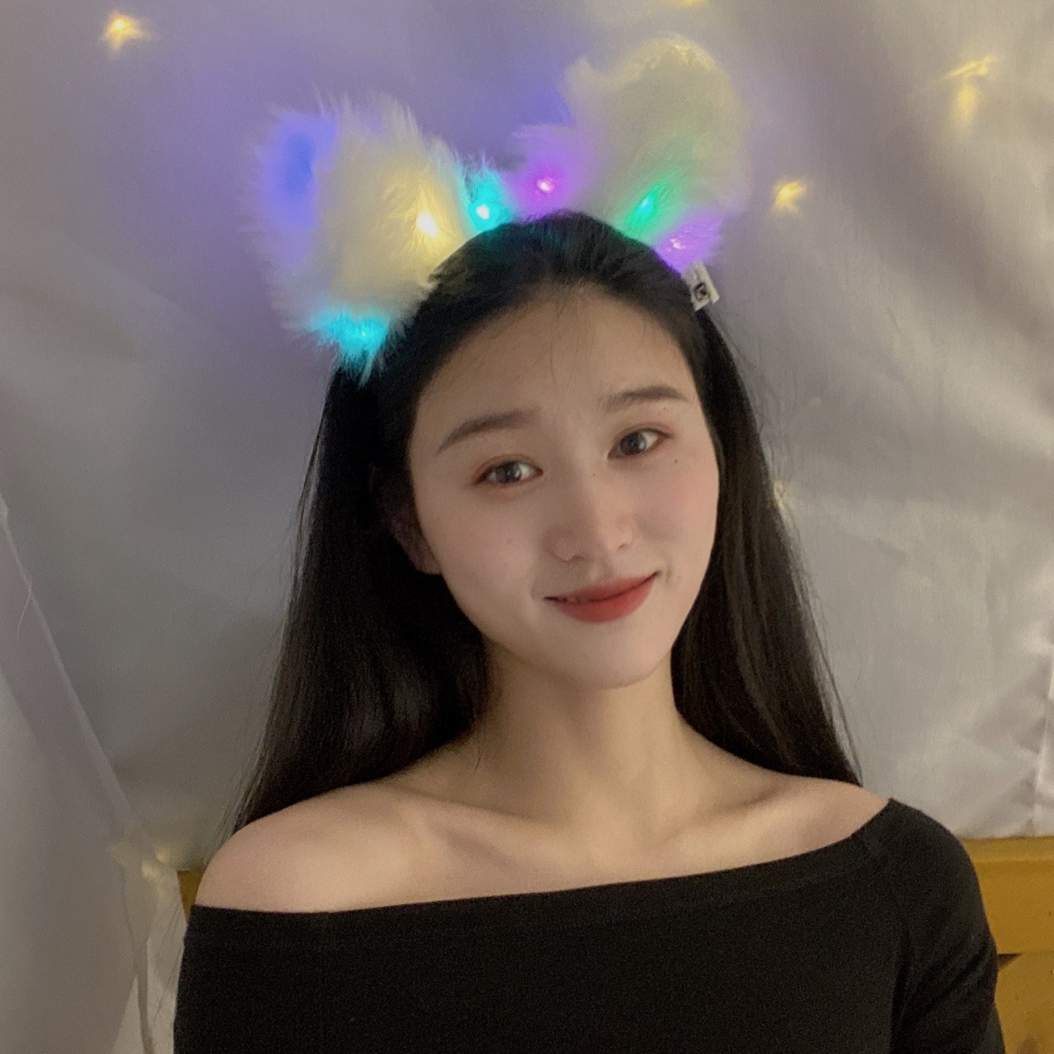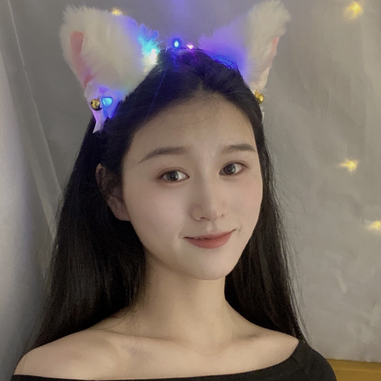 lace-trimmed cat ears-colored lights