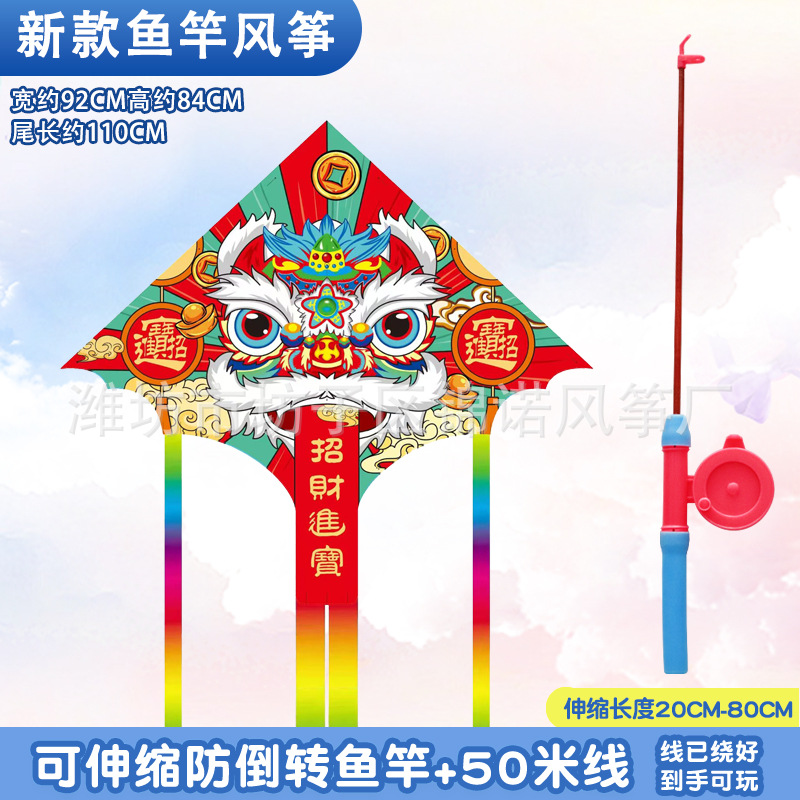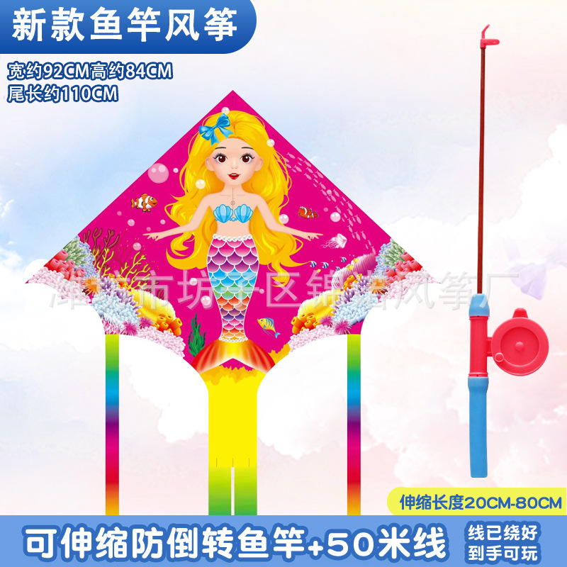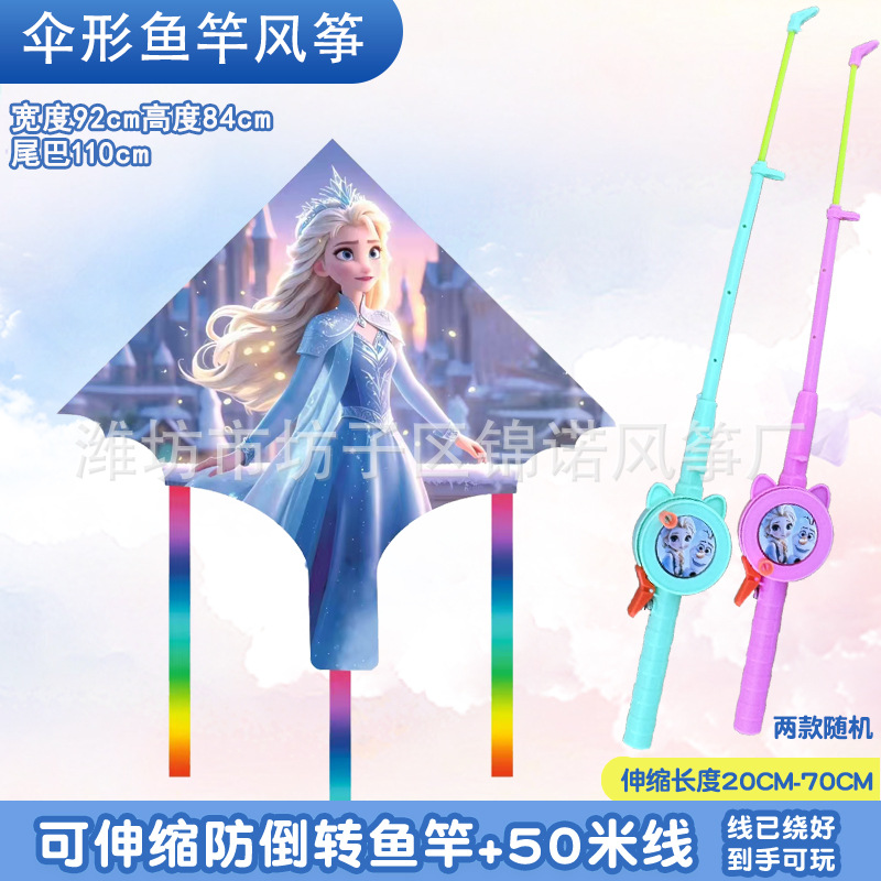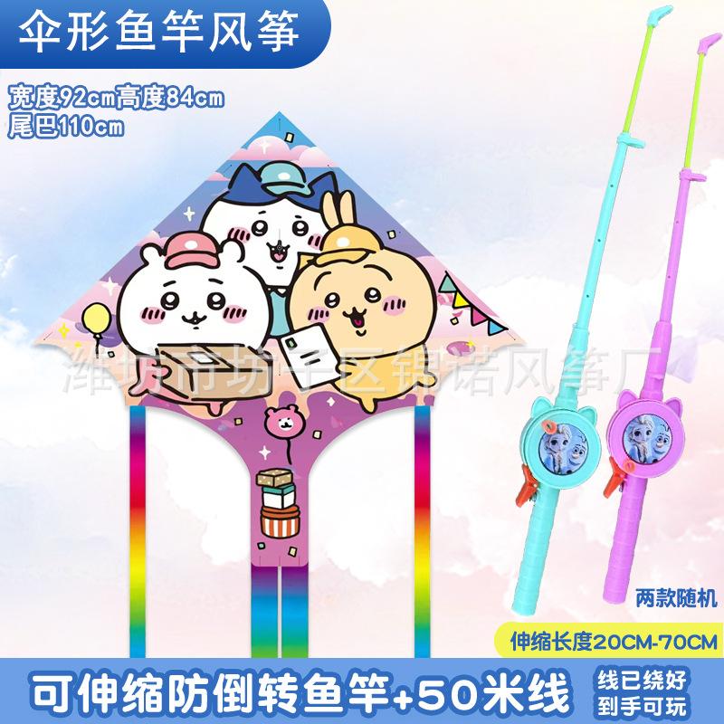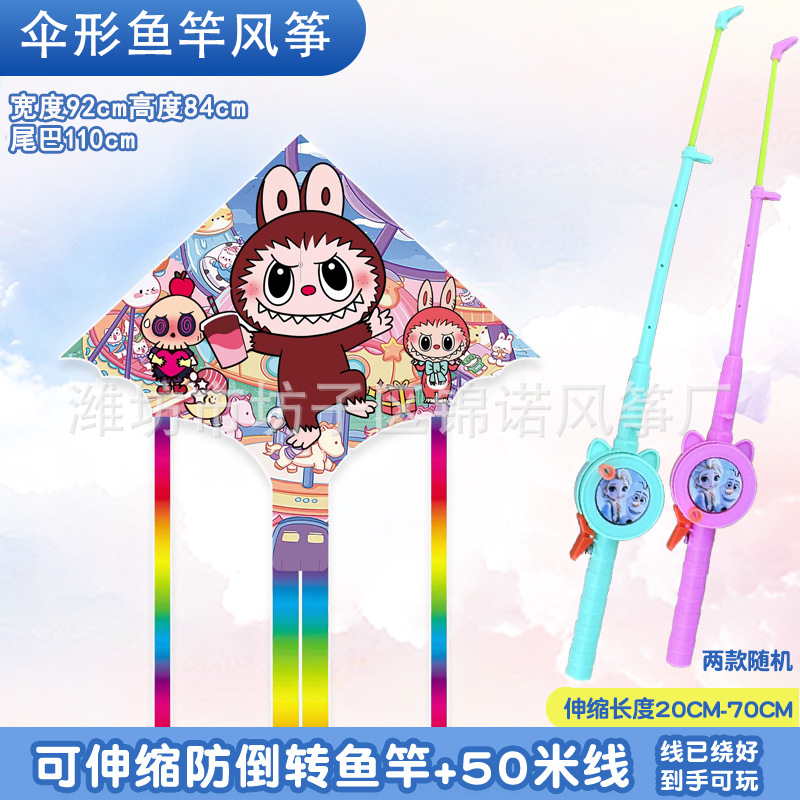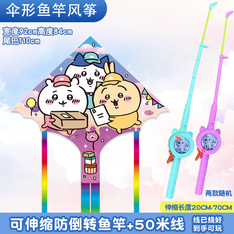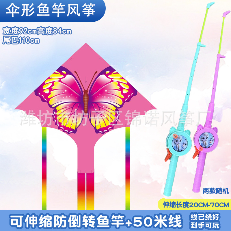 [95cm umbrella shape] kite mixed hair + red cartoon telescopic fishing rod