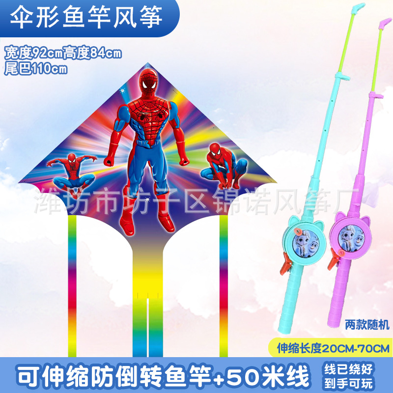 [95cm umbrella-shaped no. 4] spider-man + macaron telescopic fishing rod