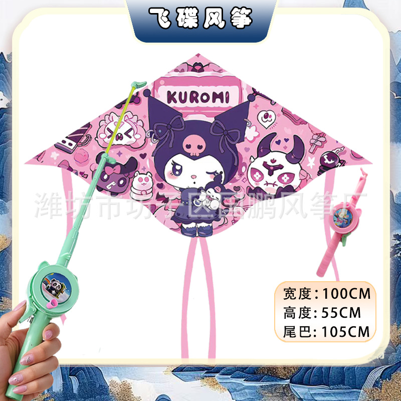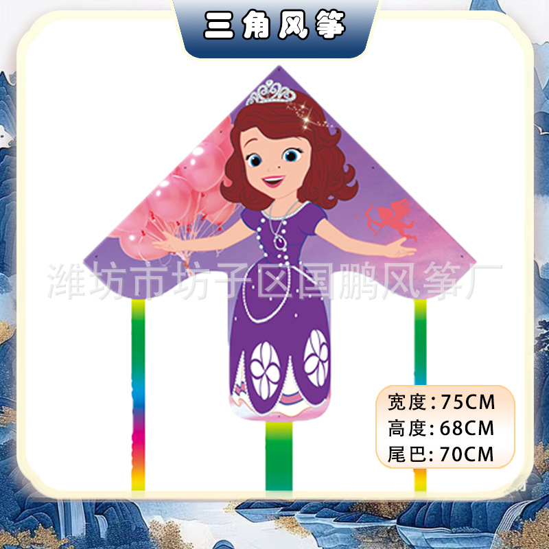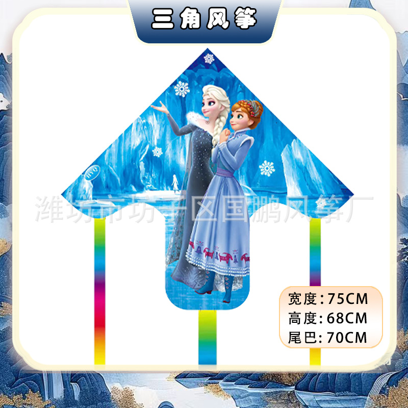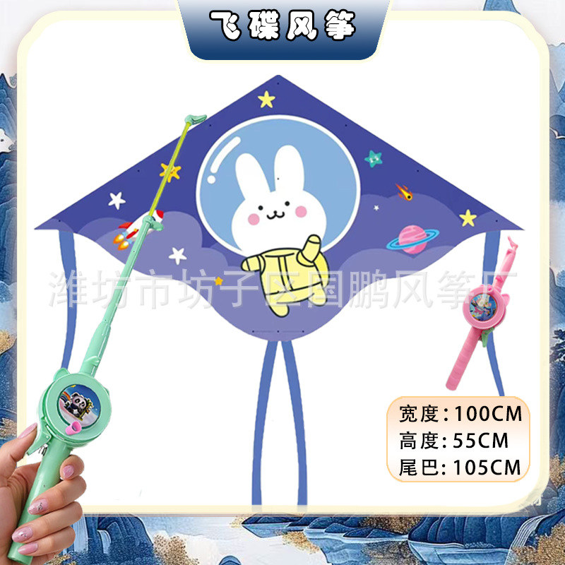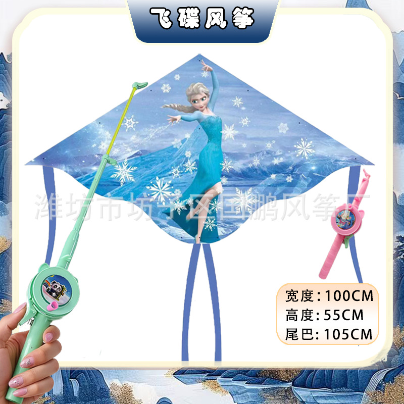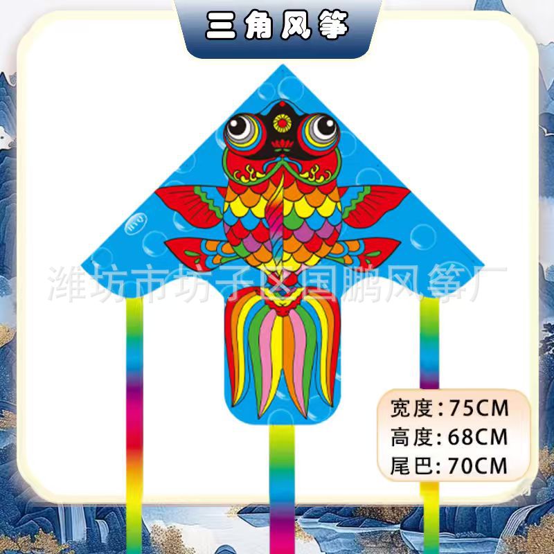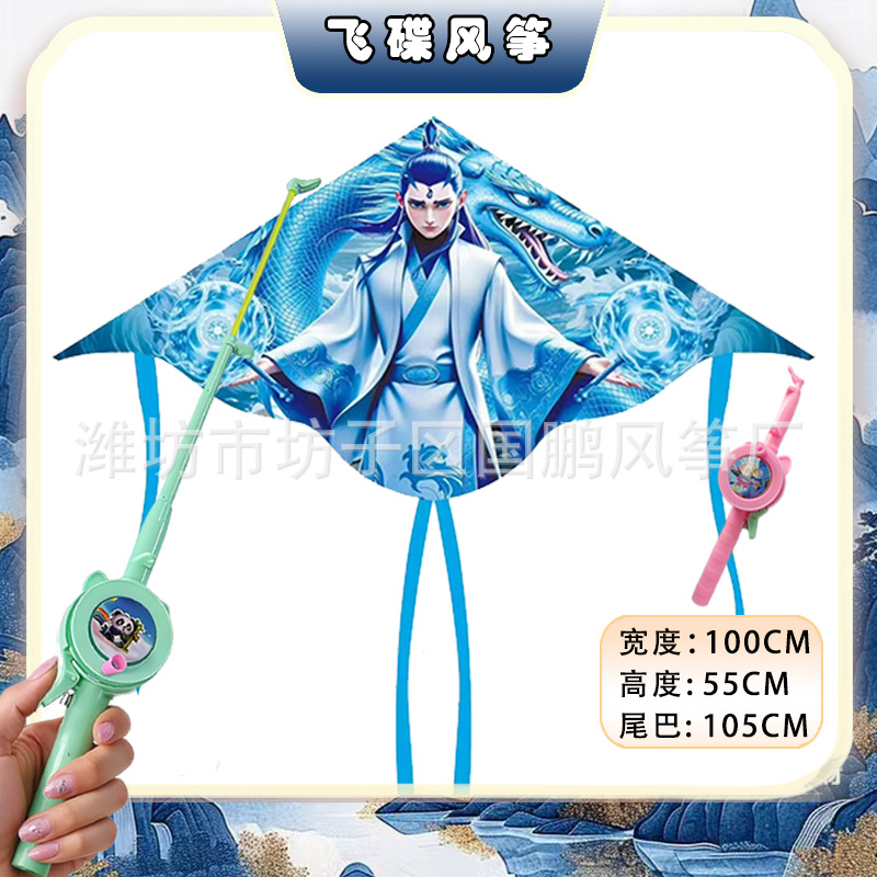 big triangle plastic kite mixed hair + blue brake fishing rod rod 50 m line