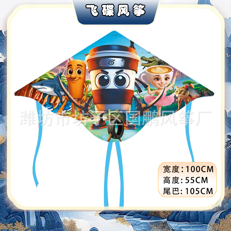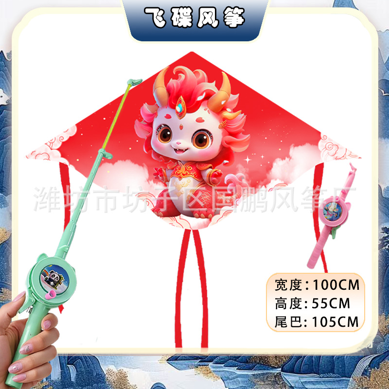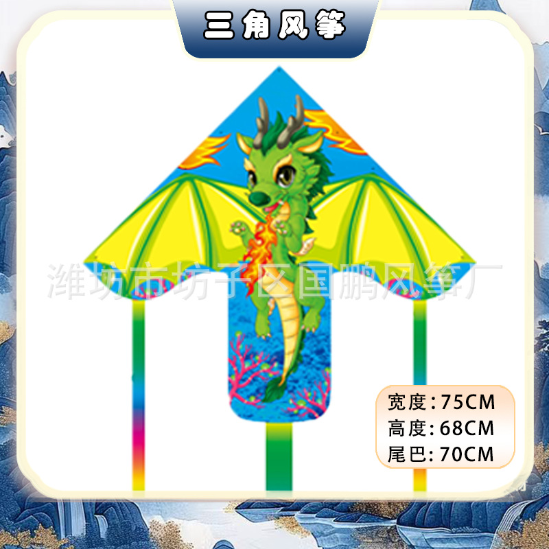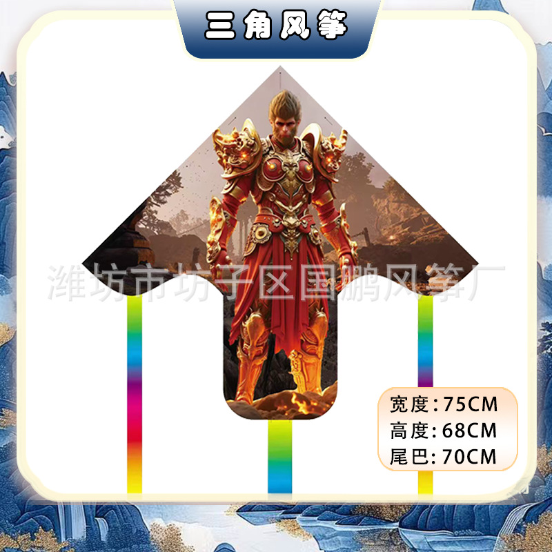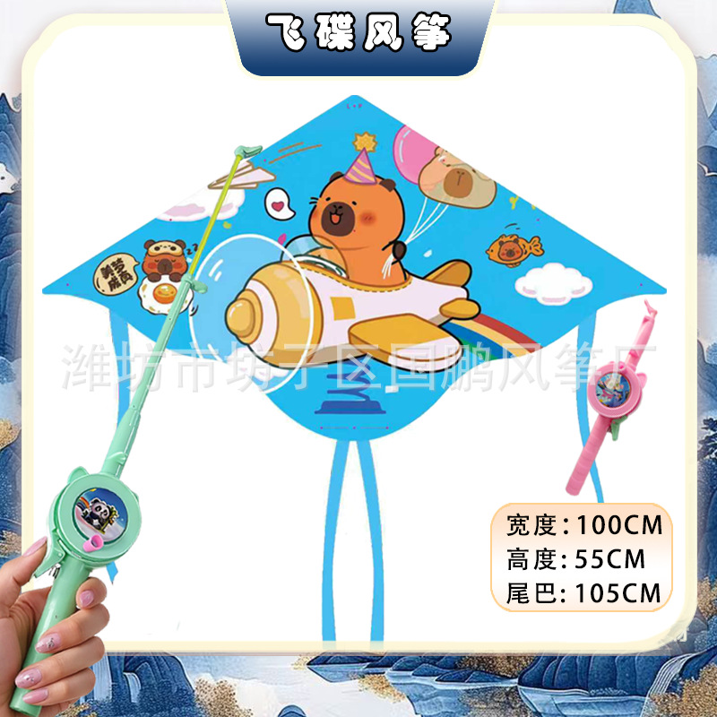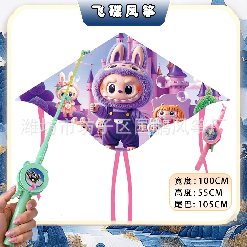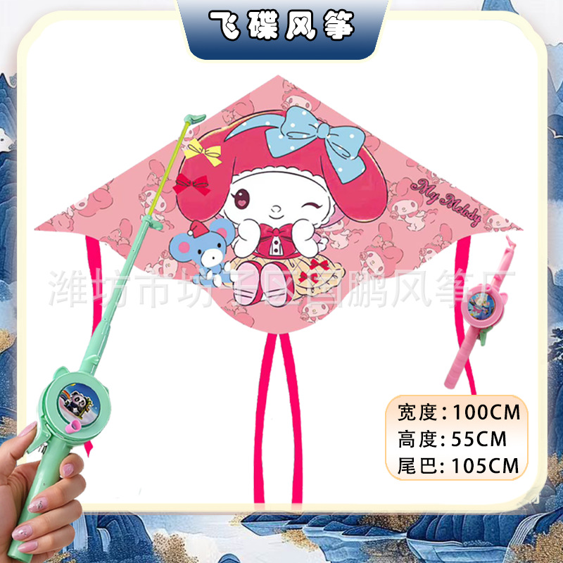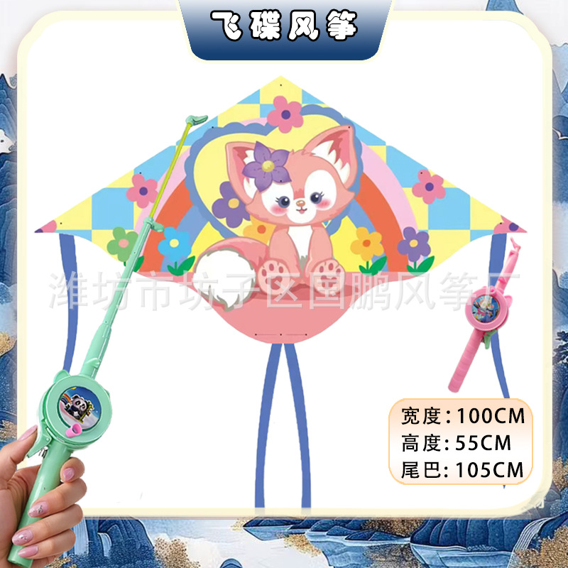 big triangle plastic kite mixed hair + blue brake fishing rod rod 50 m line
