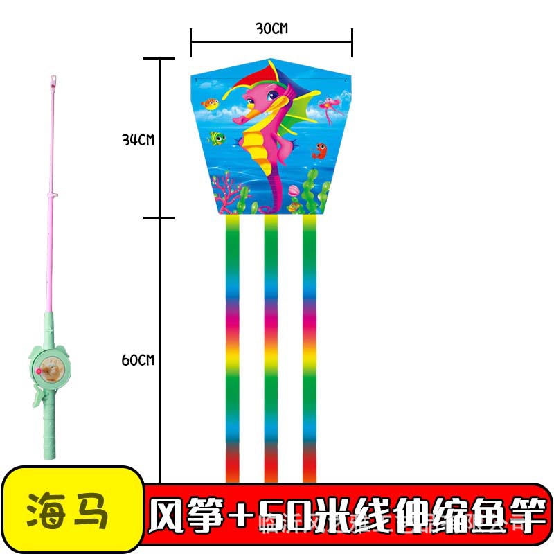 square piece kite seahorse + new fishing rod