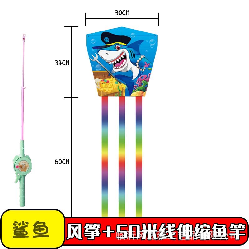 square piece kite shark + new fishing rod