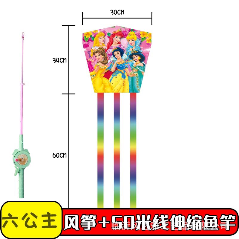 square piece kite six princess + new fishing rod