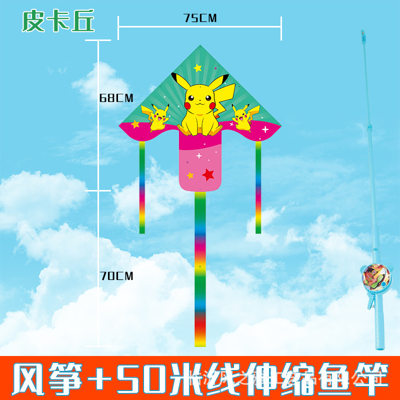 square piece kite pikachu + new fishing rod