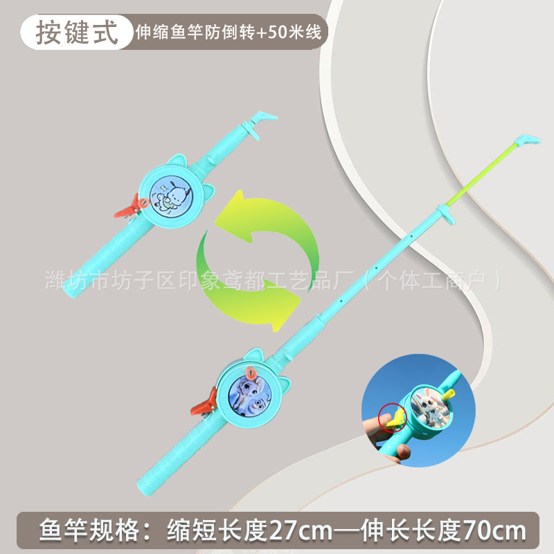 green cartoon telescopic fishing rod with line