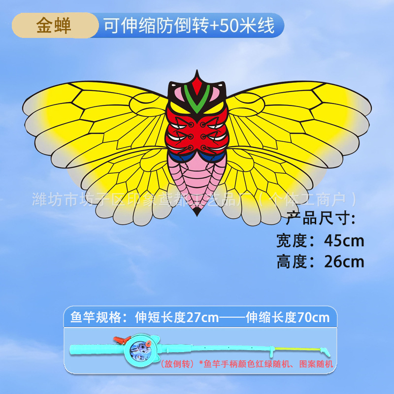 [45cm dynamic 4] golden cicada + macaron telescopic fishing rod with line