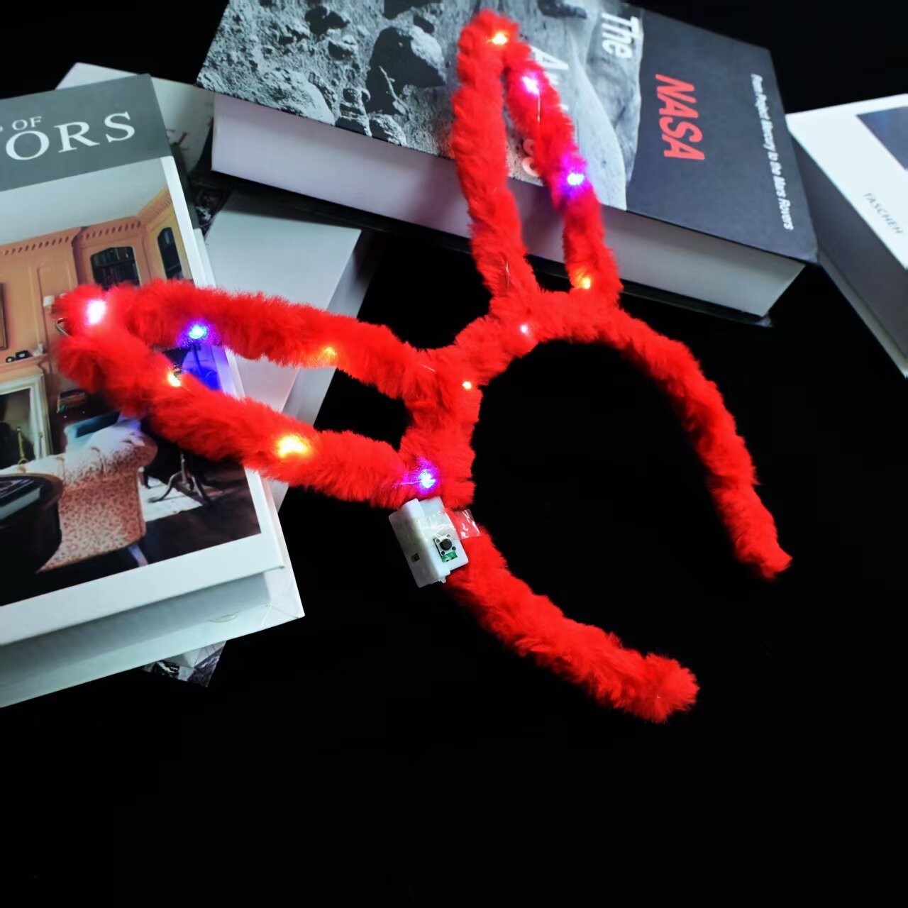 14 lights full fur rabbit ears red