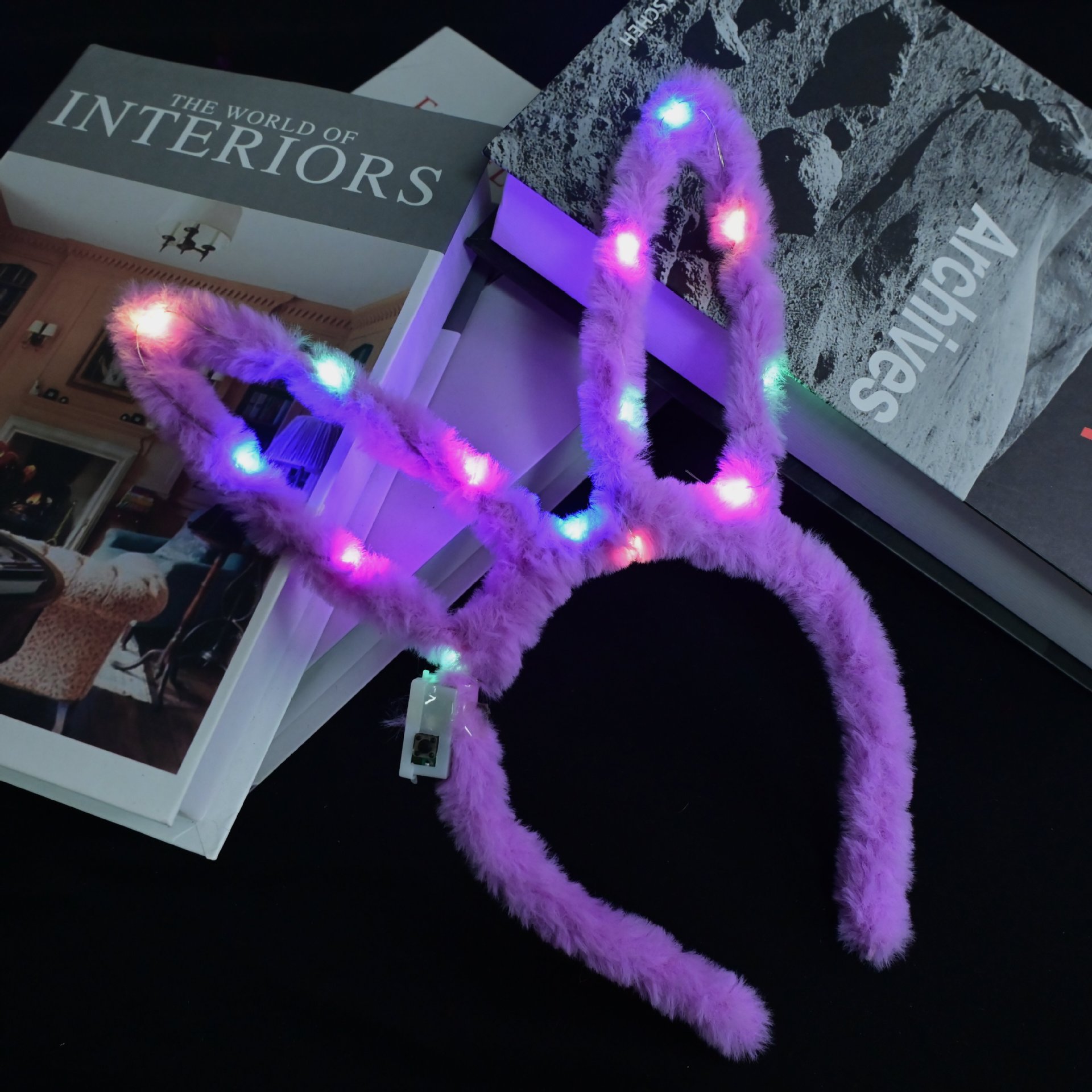 14 lamp full fur rabbit ears purple
