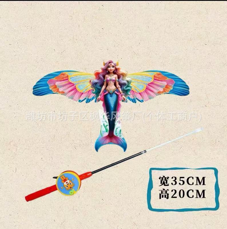 new mermaid [35cm large dynamic] + red cartoon fishing rod with 50 m line