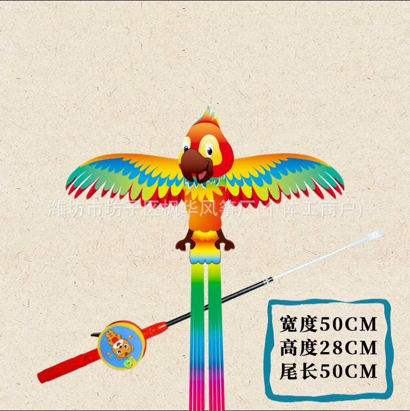 cartoon parrot [35cm large dynamic] + red cartoon fishing rod with 50 m line