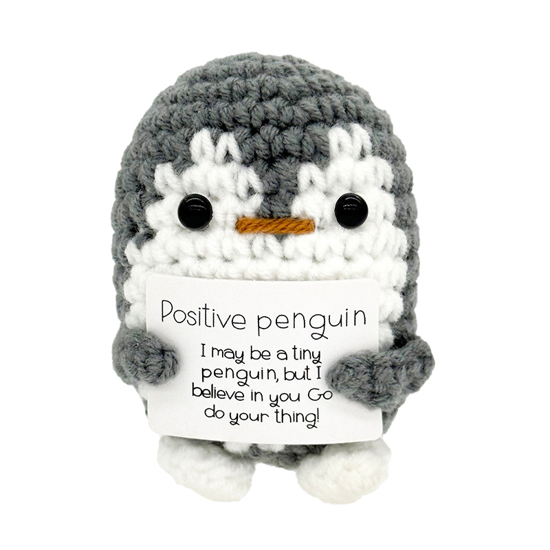 gray penguin holding love (p card)