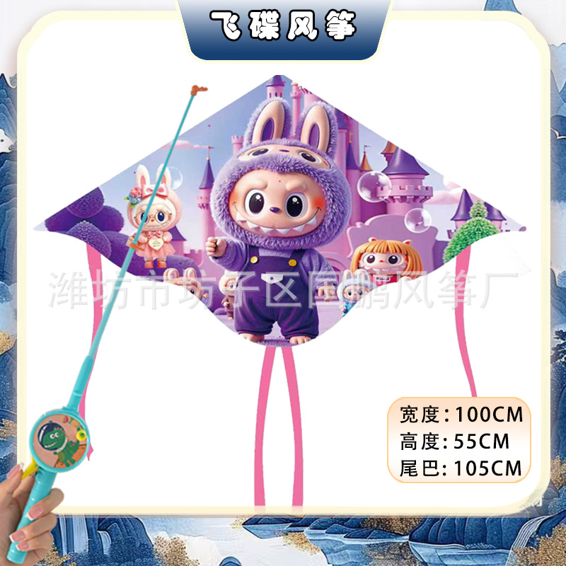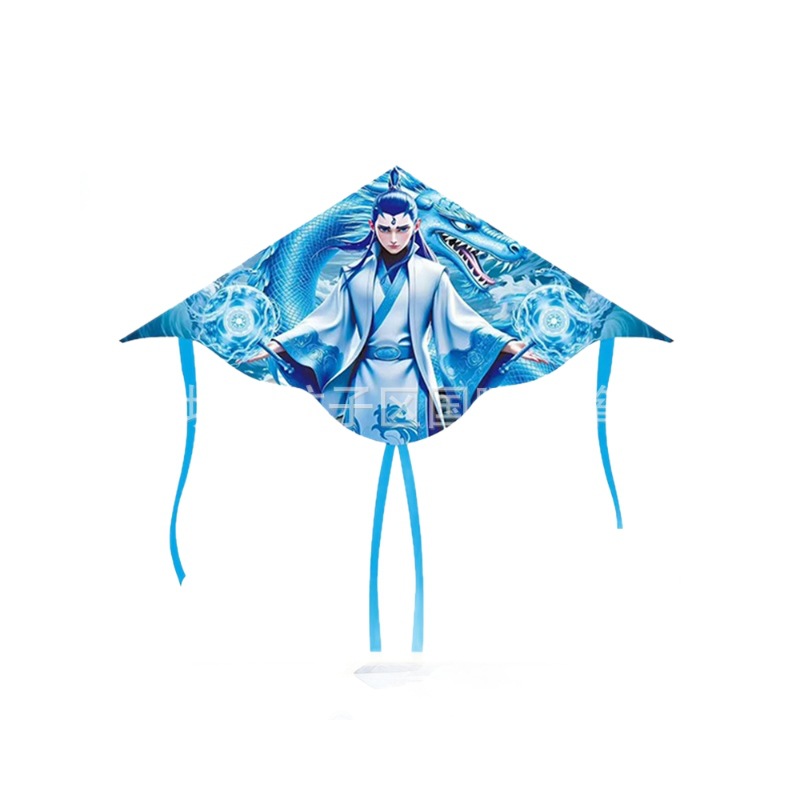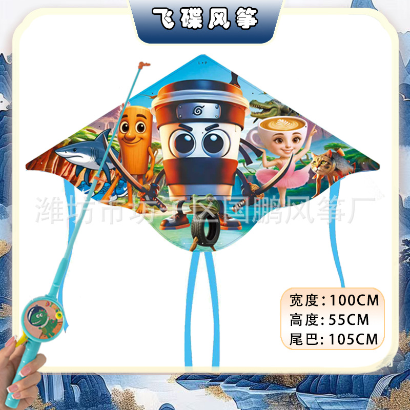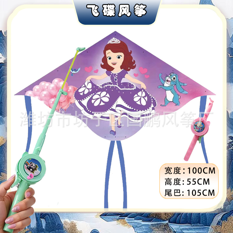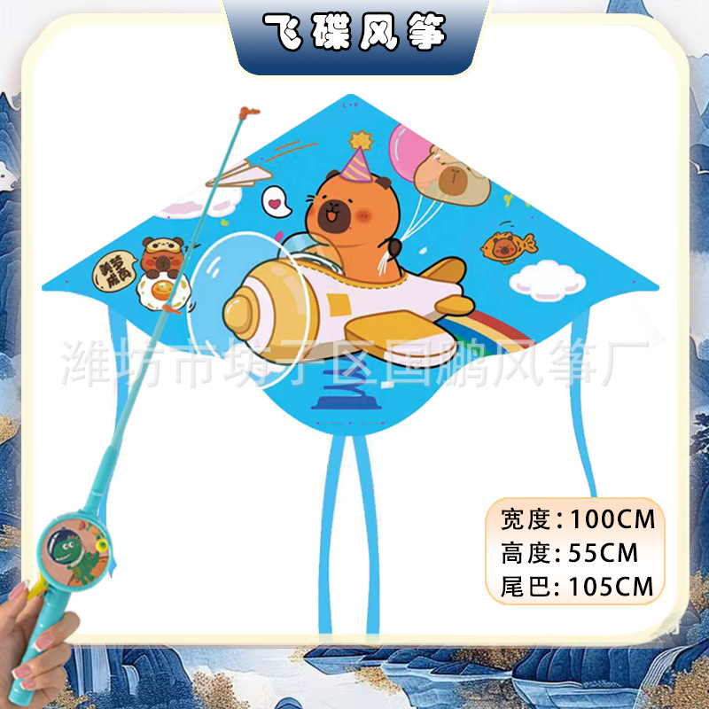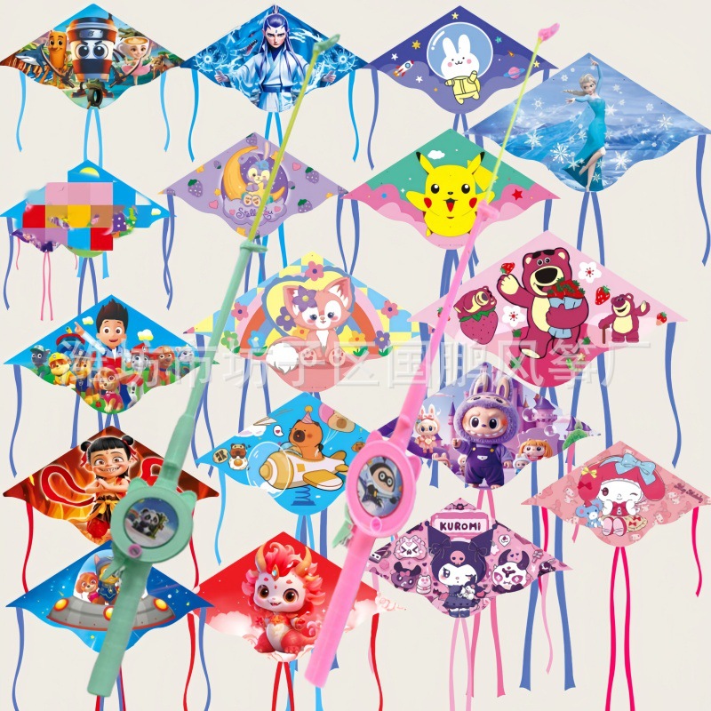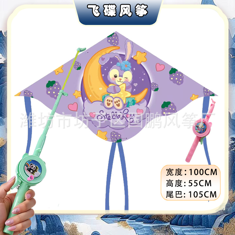 [1 m double tail] kite mixed hair + blue cartoon retractable fishing rod with line