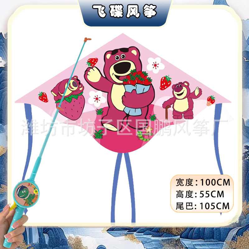 [1 m double tail] strawberry bear + red cartoon retractable fishing rod with line