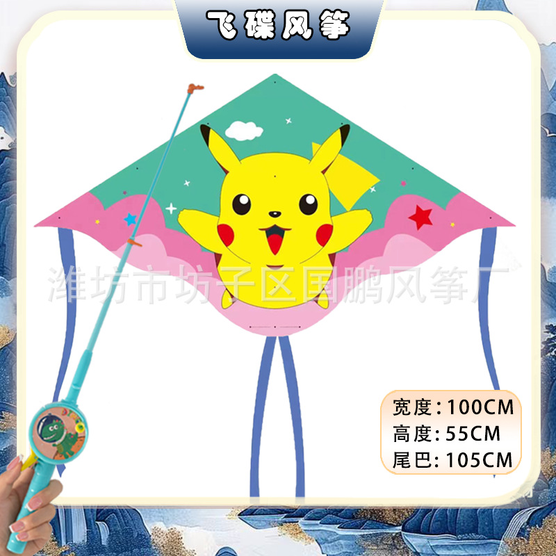 [1 m double tail] pikachu + red cartoon retractable fishing rod with line
