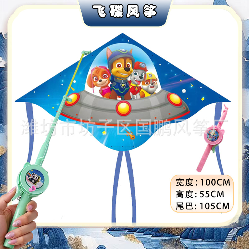 [1 m double tail] starry sky paw patrol + red cartoon retractable fishing rod with line