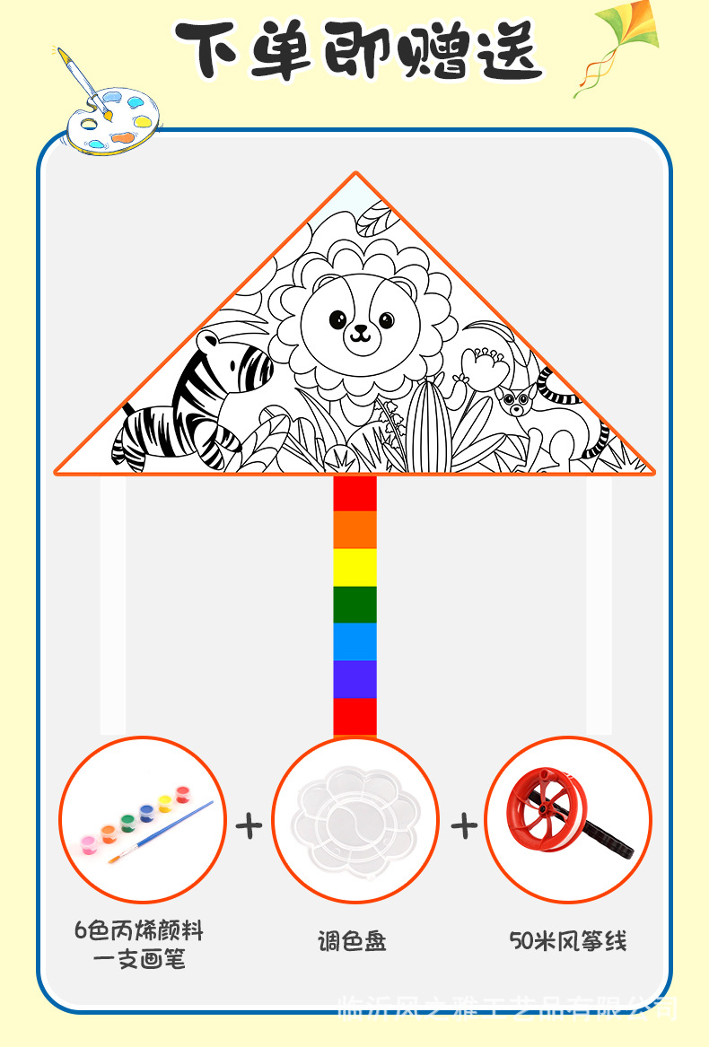 // 1 m coloring lion +6 color paint + pen +60 m thick thread board + palette + reference drawing