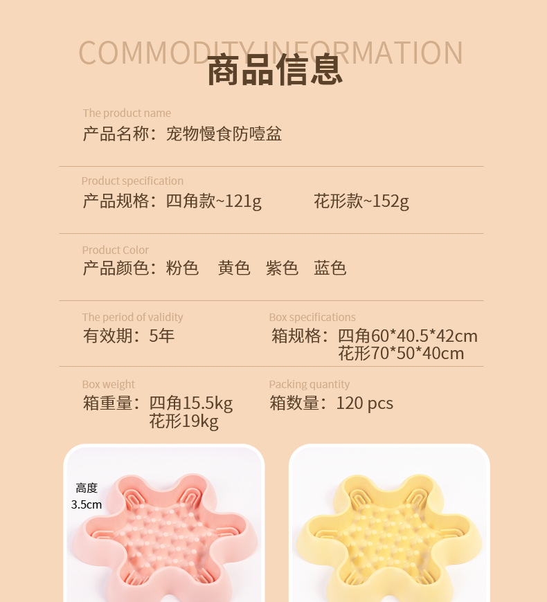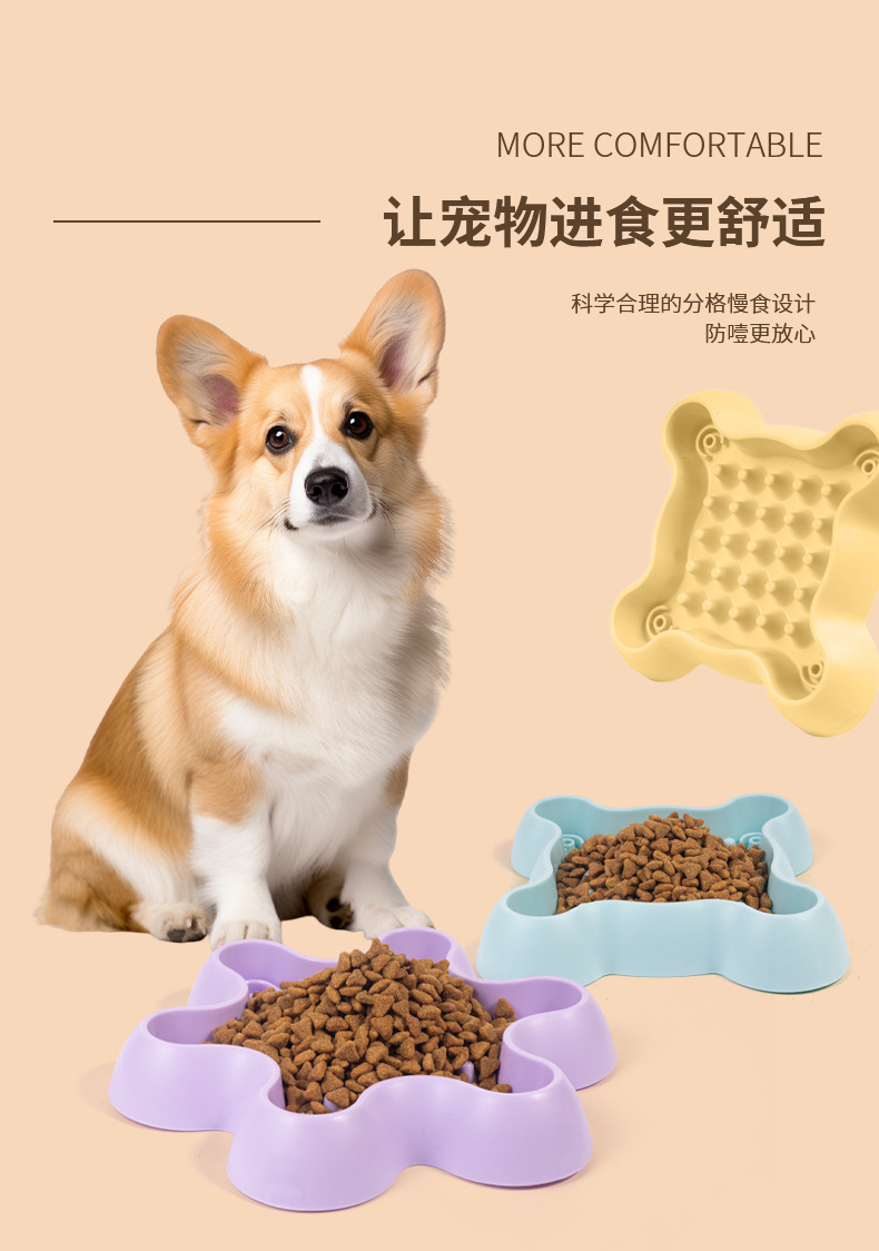 yellow hexagonal plum blossom-cute pet slow feeding bowl