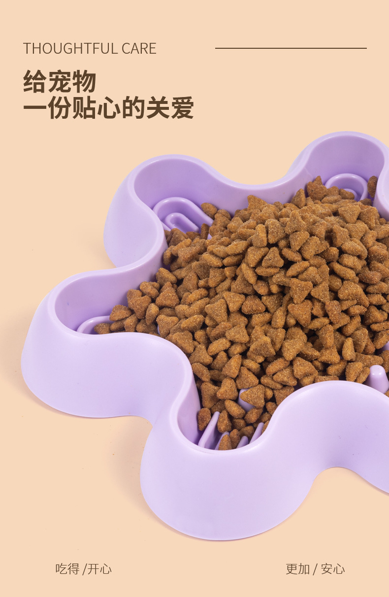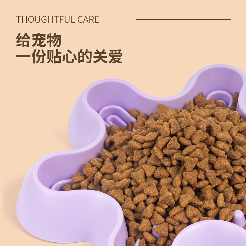 purple hexagonal plum blossom-cute pet slow feeding bowl