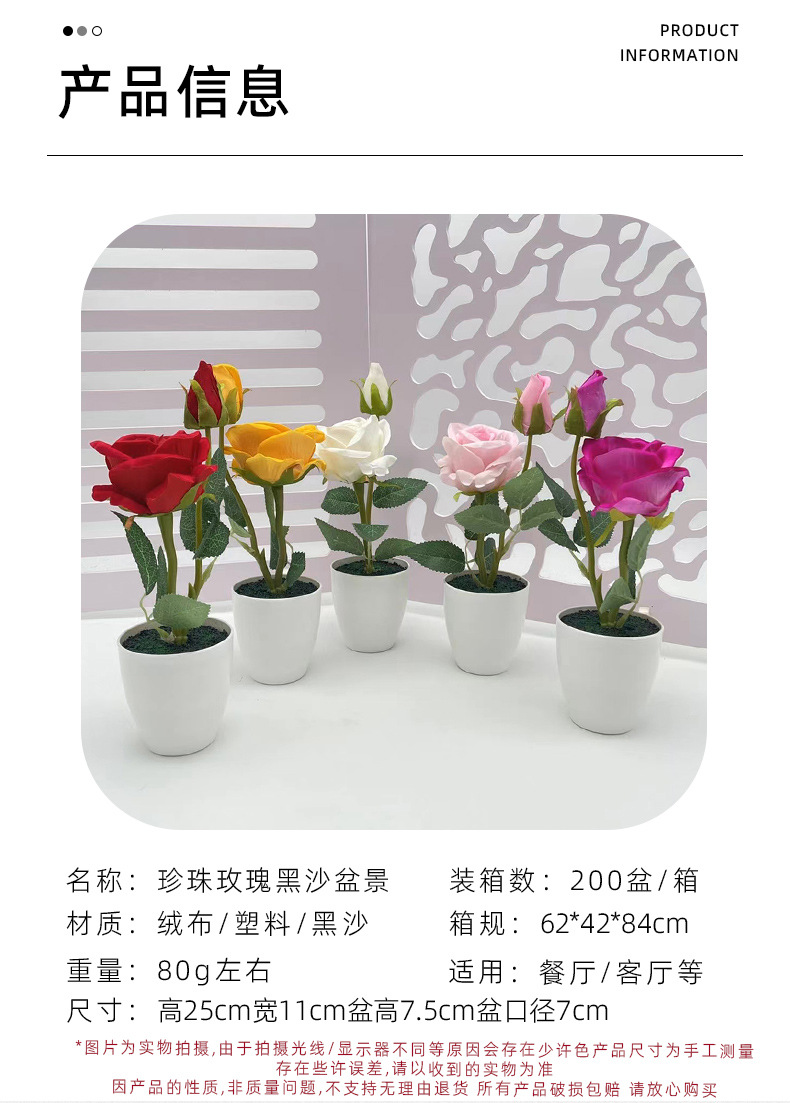 item no.: new two-head pearl rose black sand velvet basin bonsai