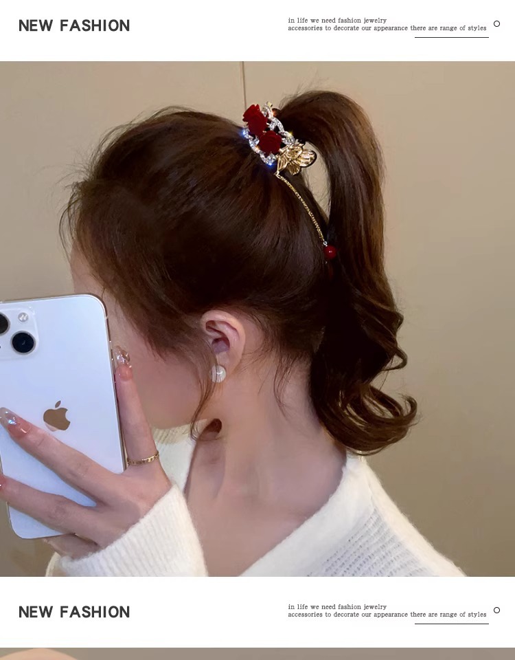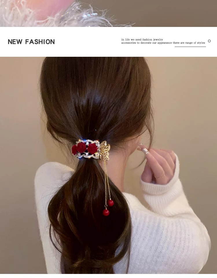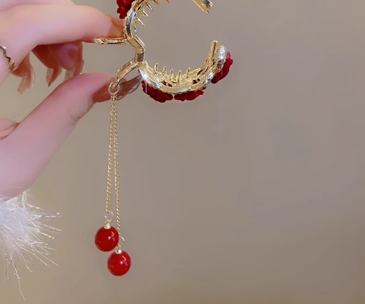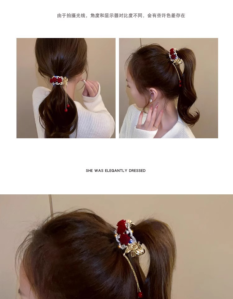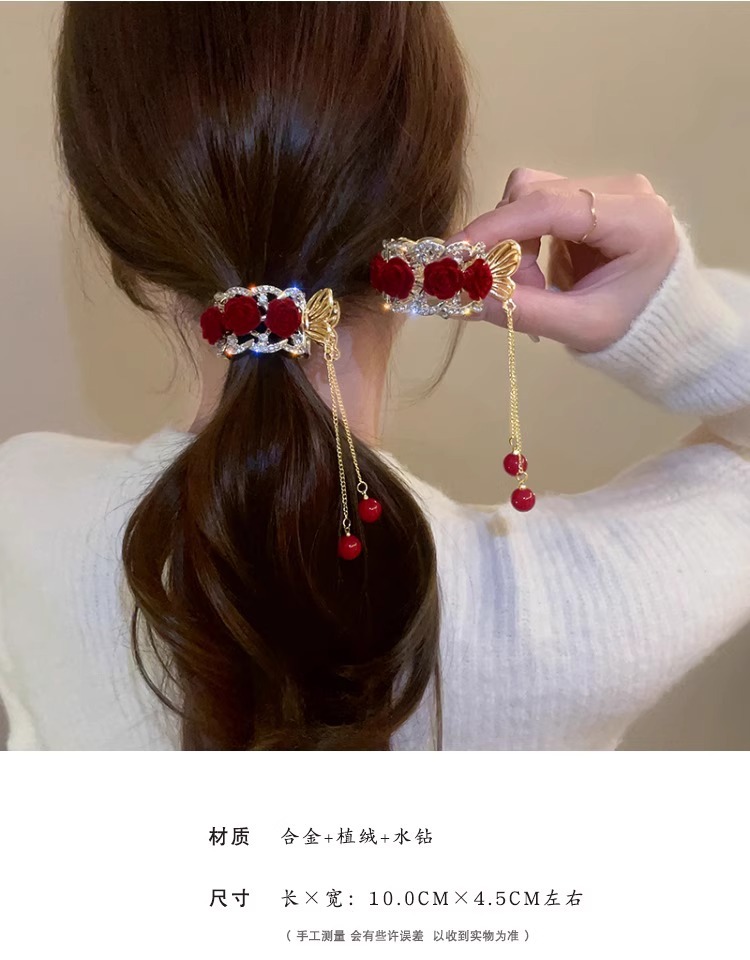 flower ponytail tassel-red flower