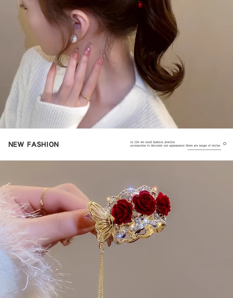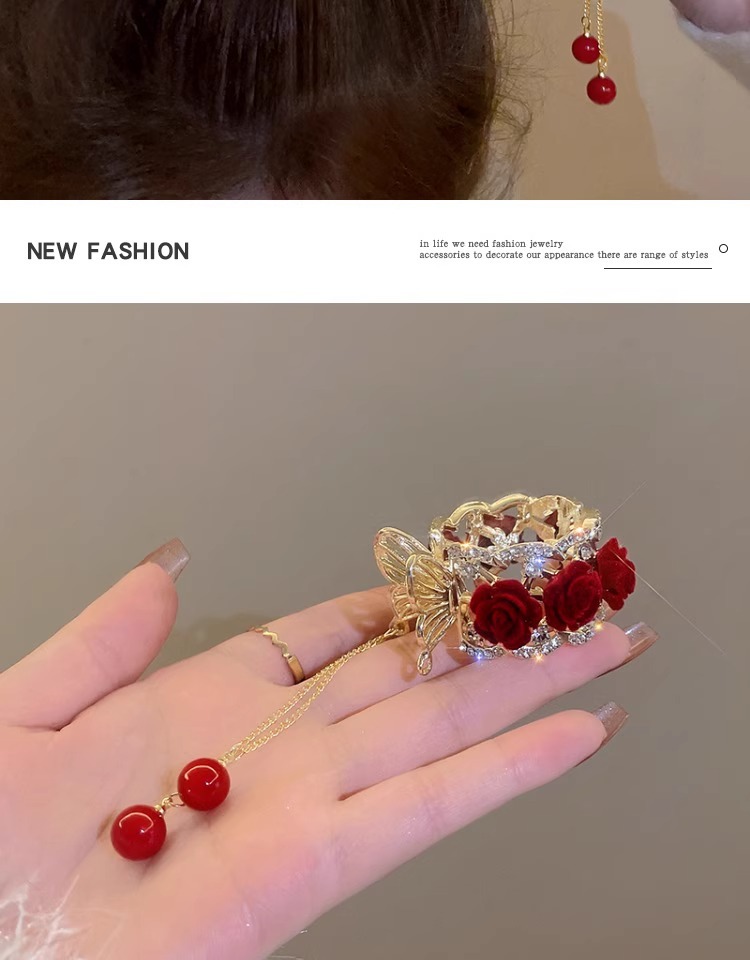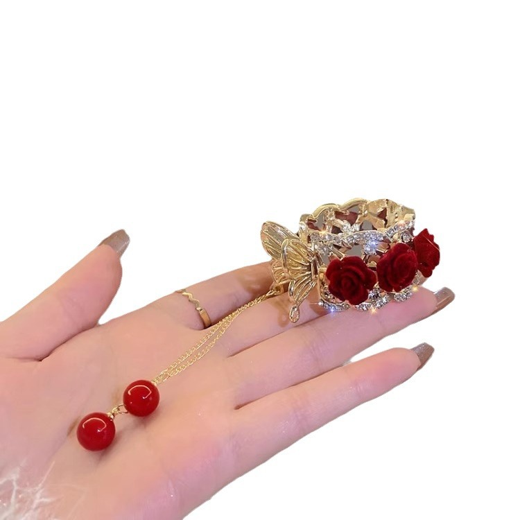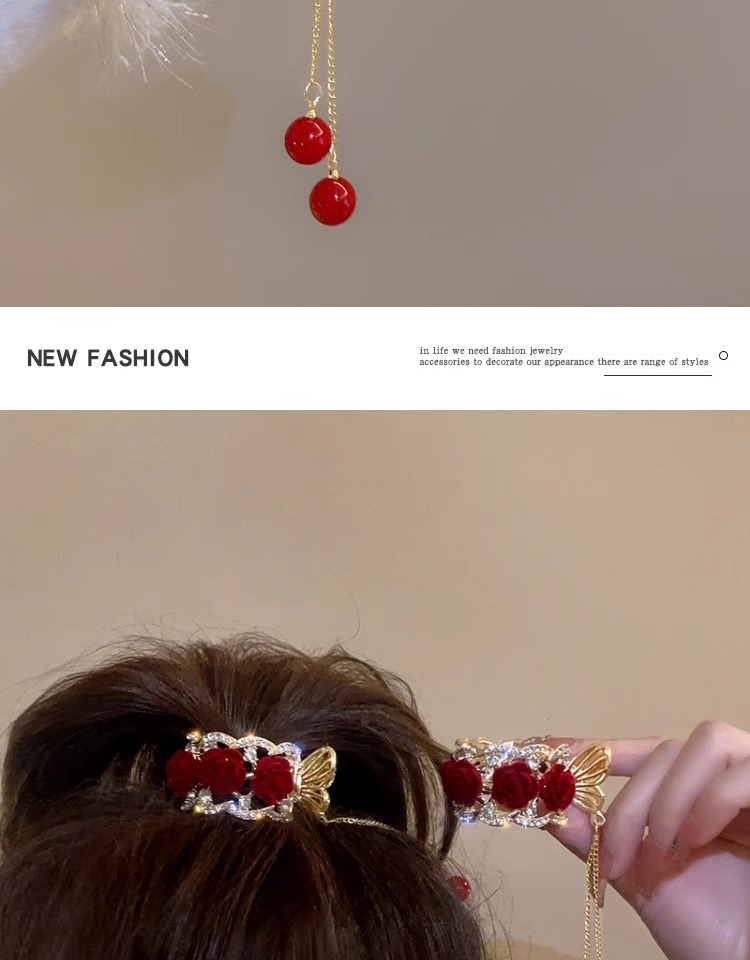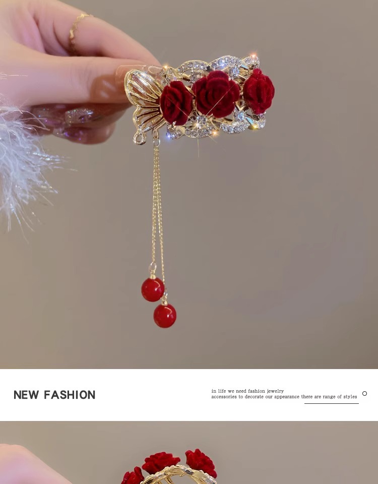 flower ponytail tassel-red flower