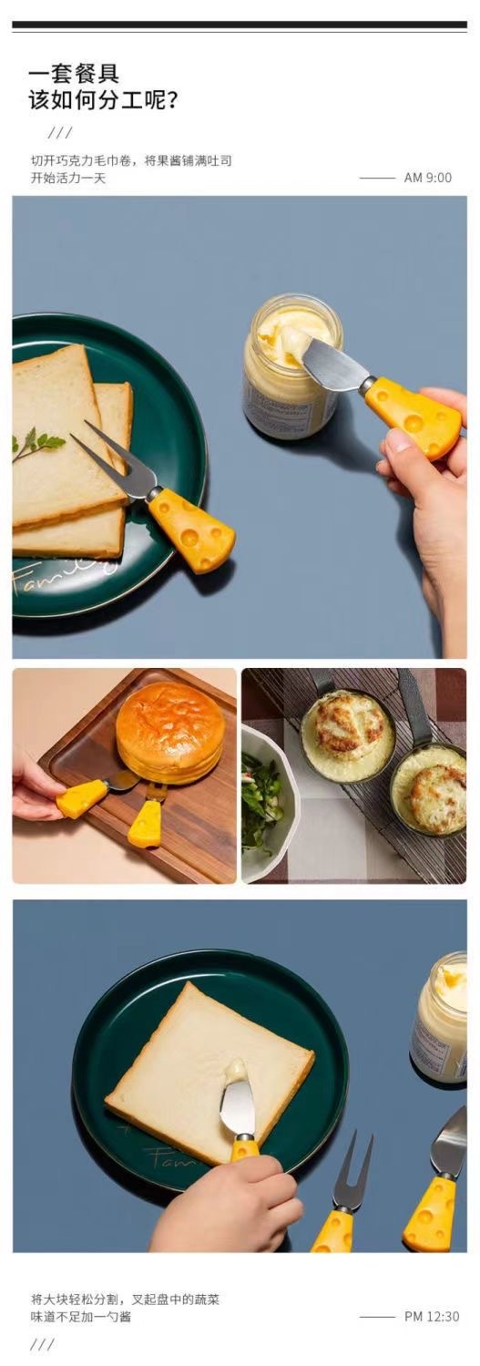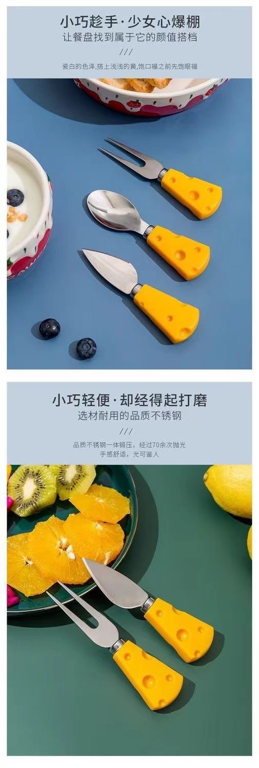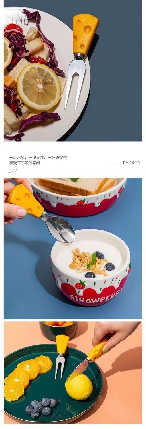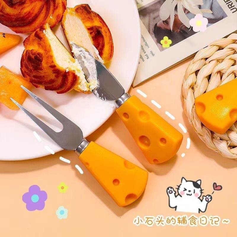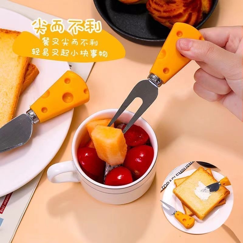 cheese fruit fork, cheese heart knife, cheese straight knife, cheese flat shovel