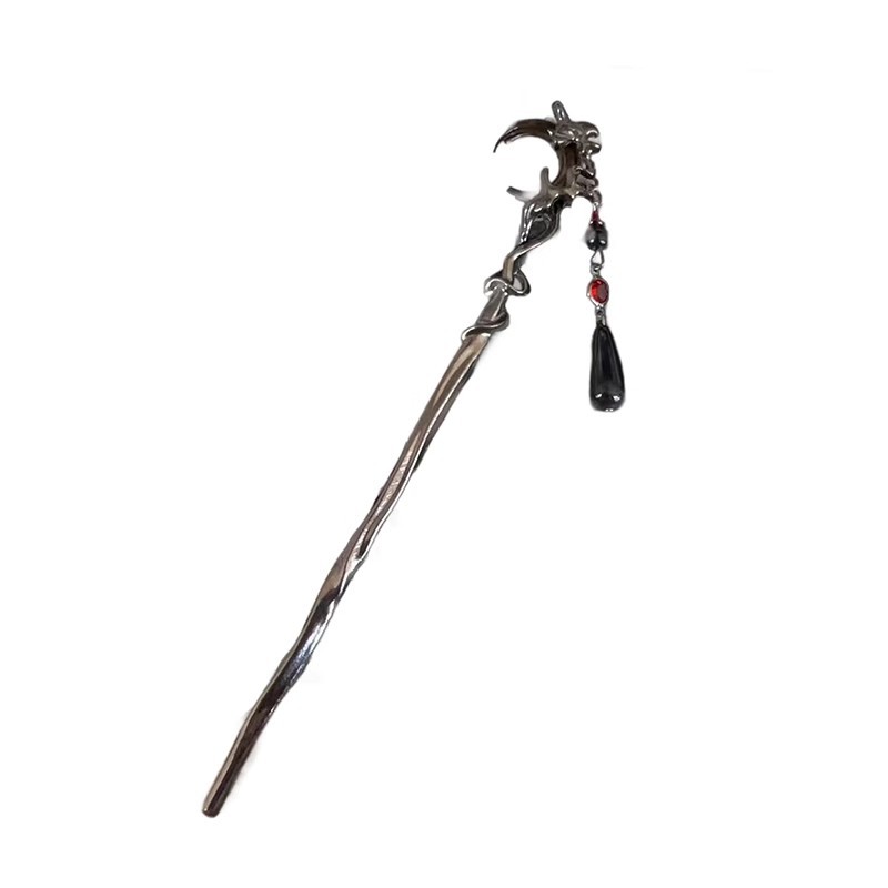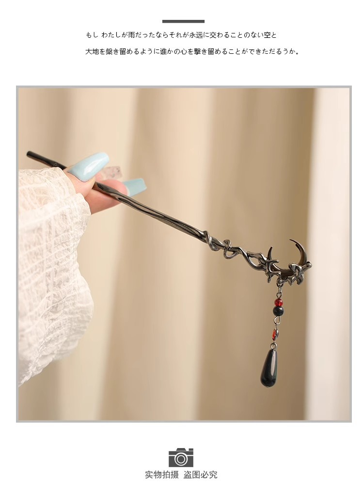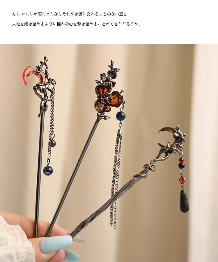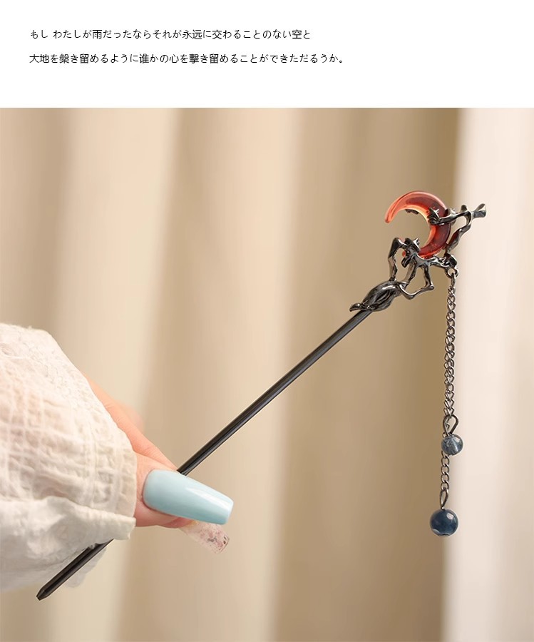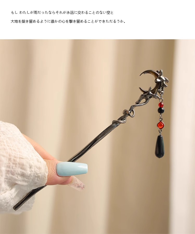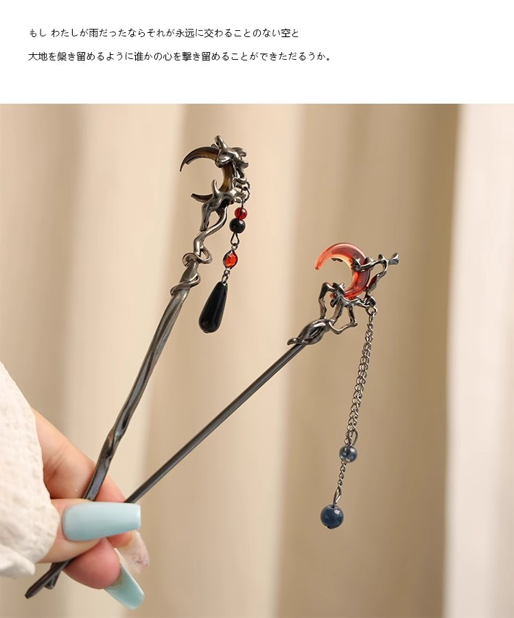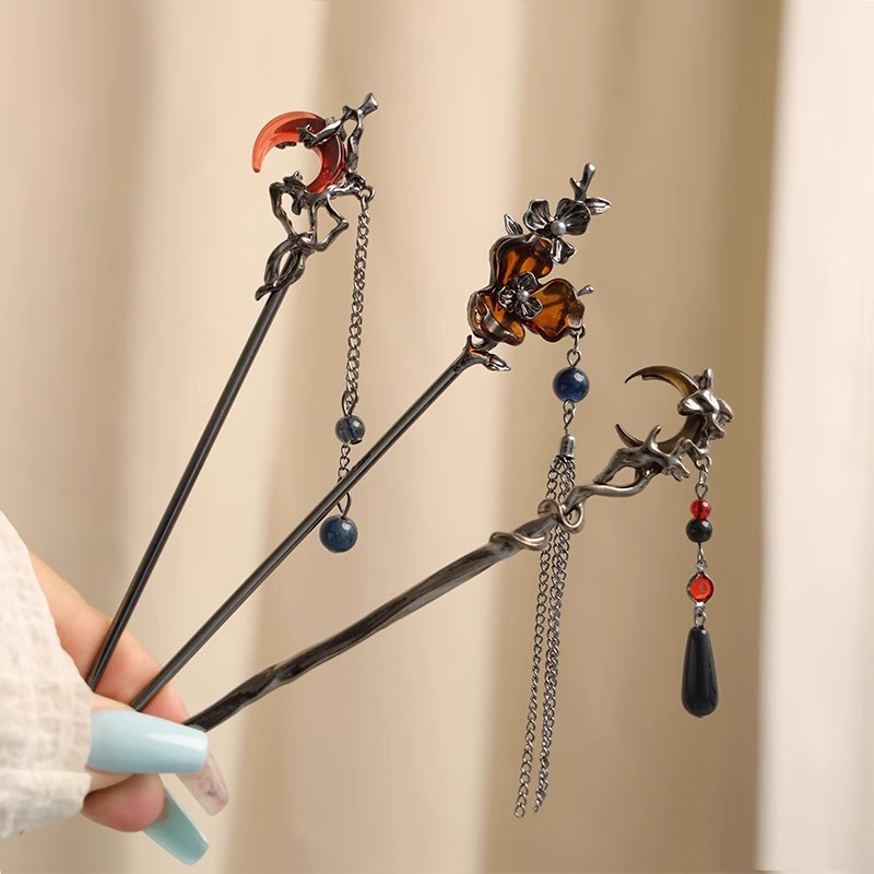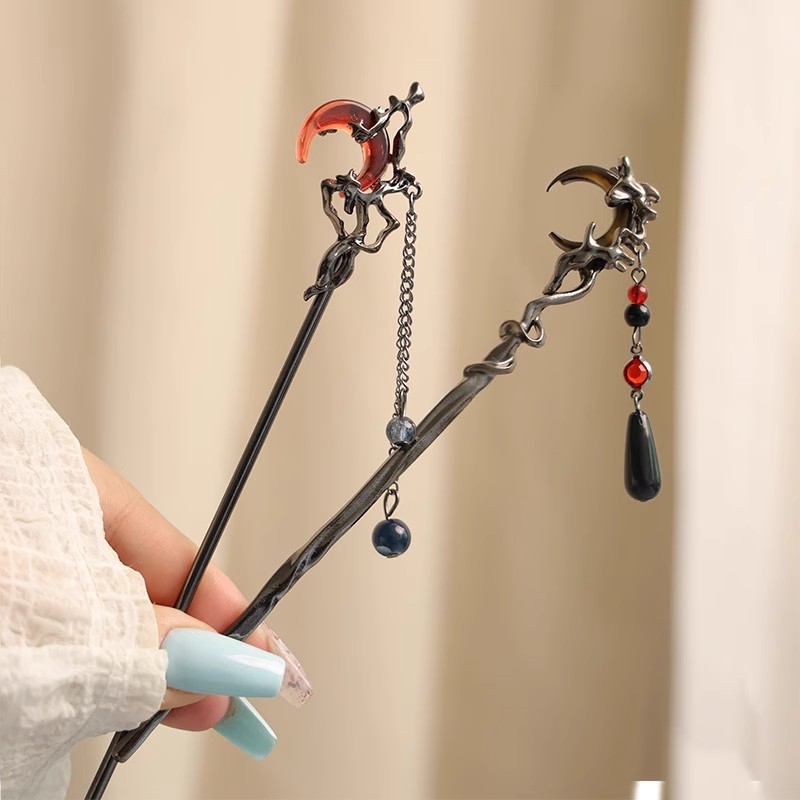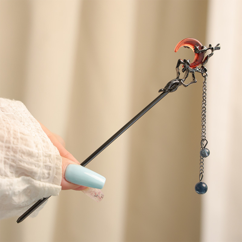 gun-black red moon tassel hairpin