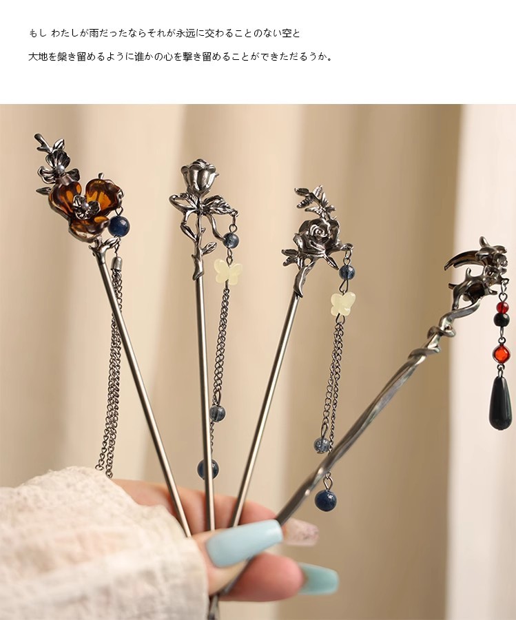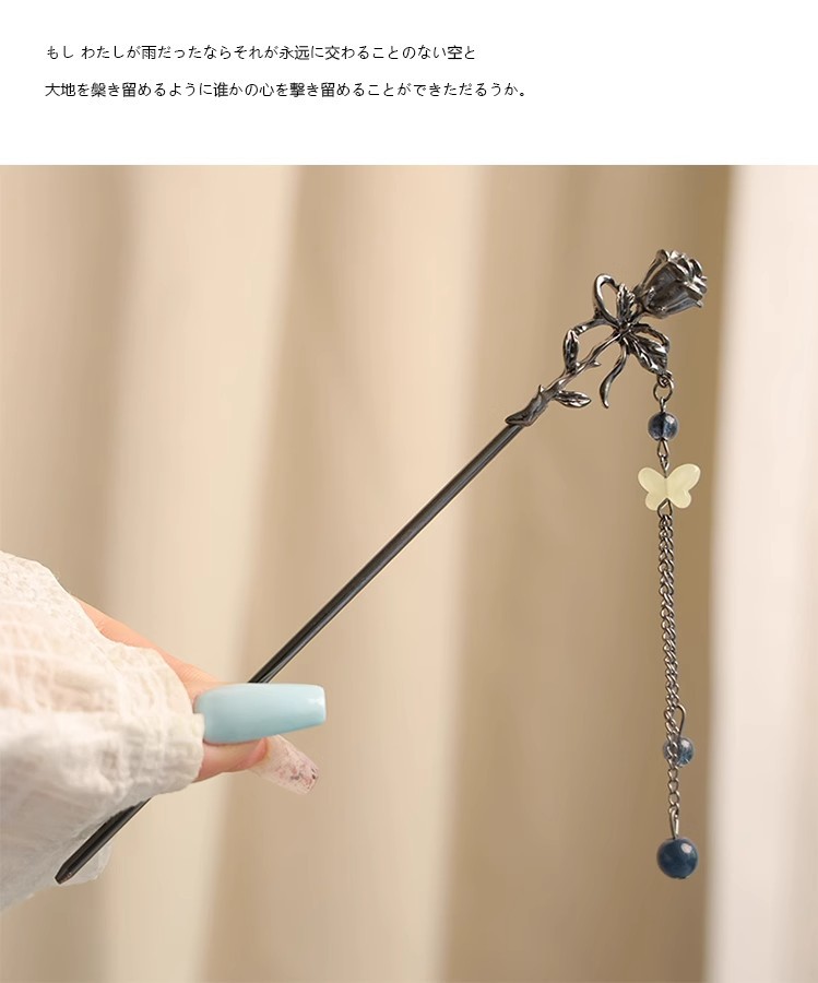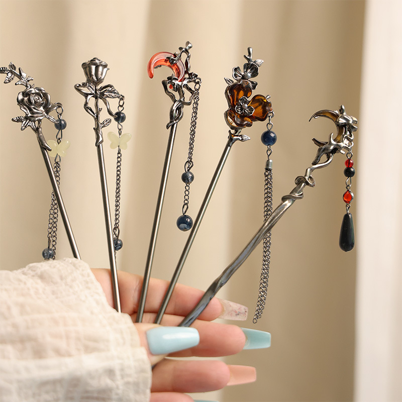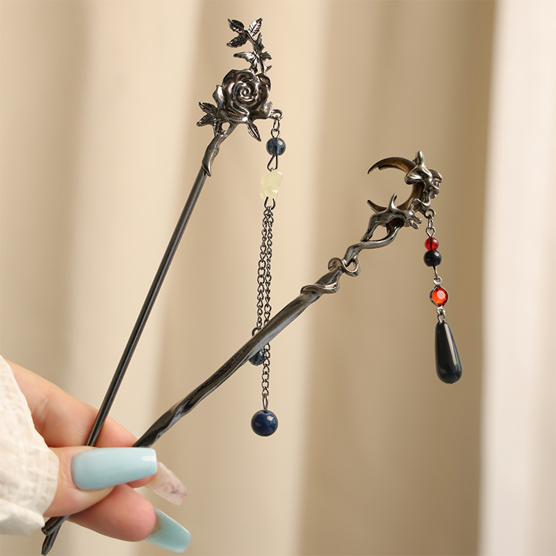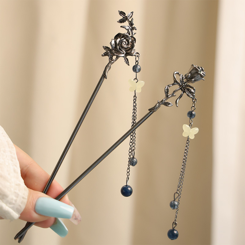 gun black rose tassel hairpin