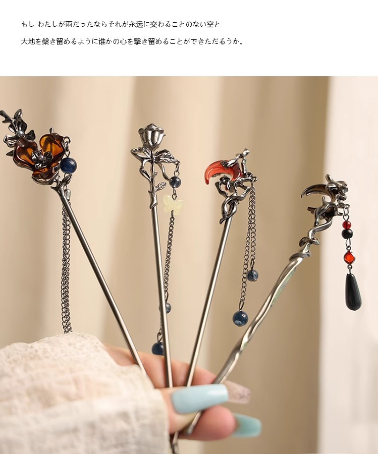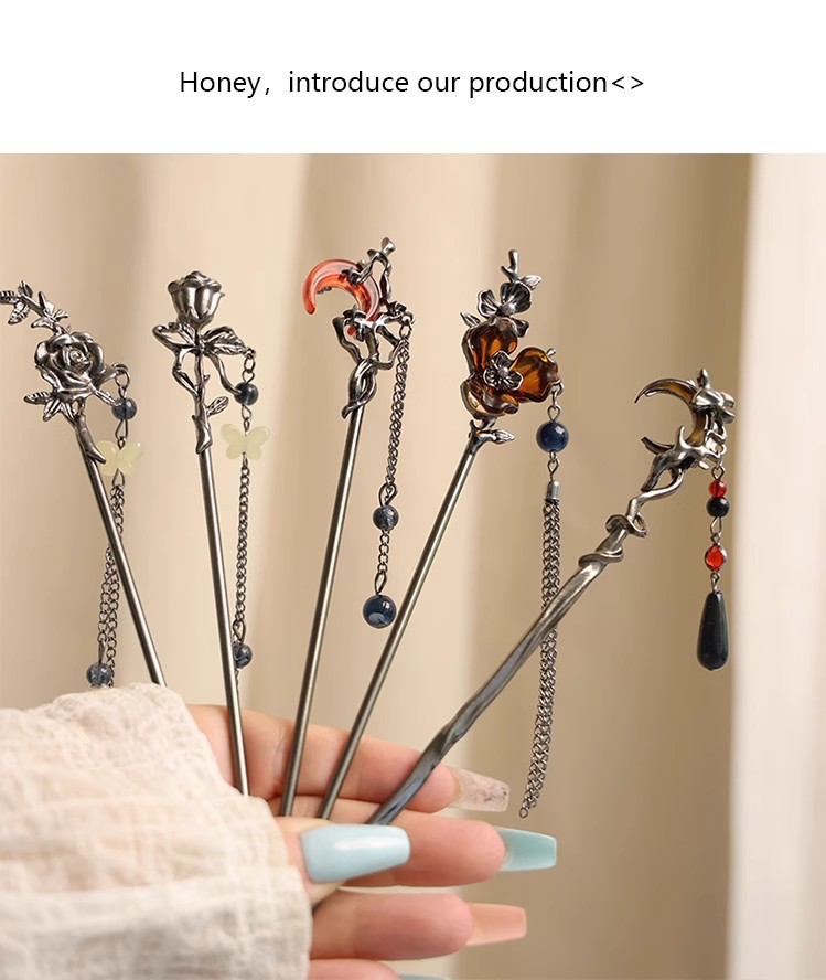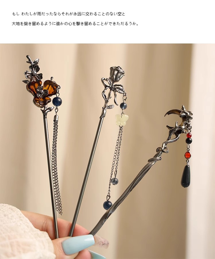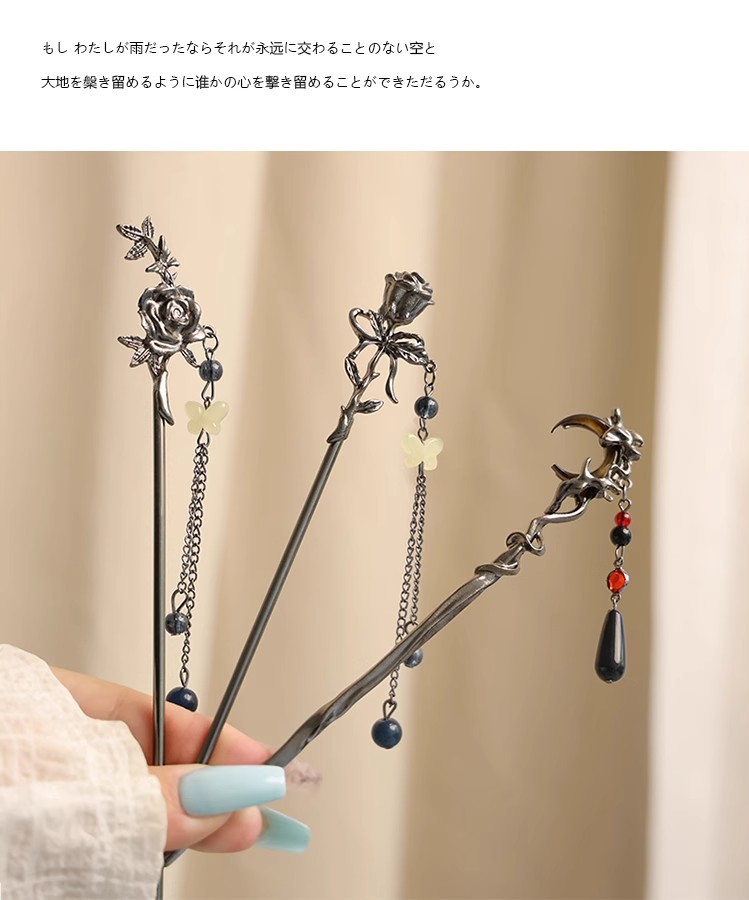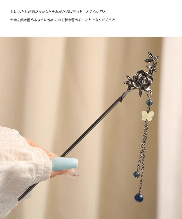gun black rose tassel hairpin