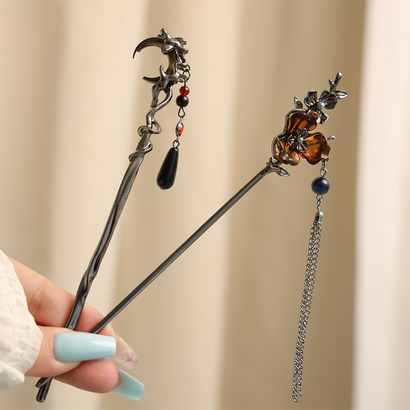 gun-black moon tassel hairpin