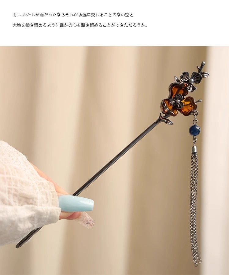 gunmetal black bud tassel hairpin