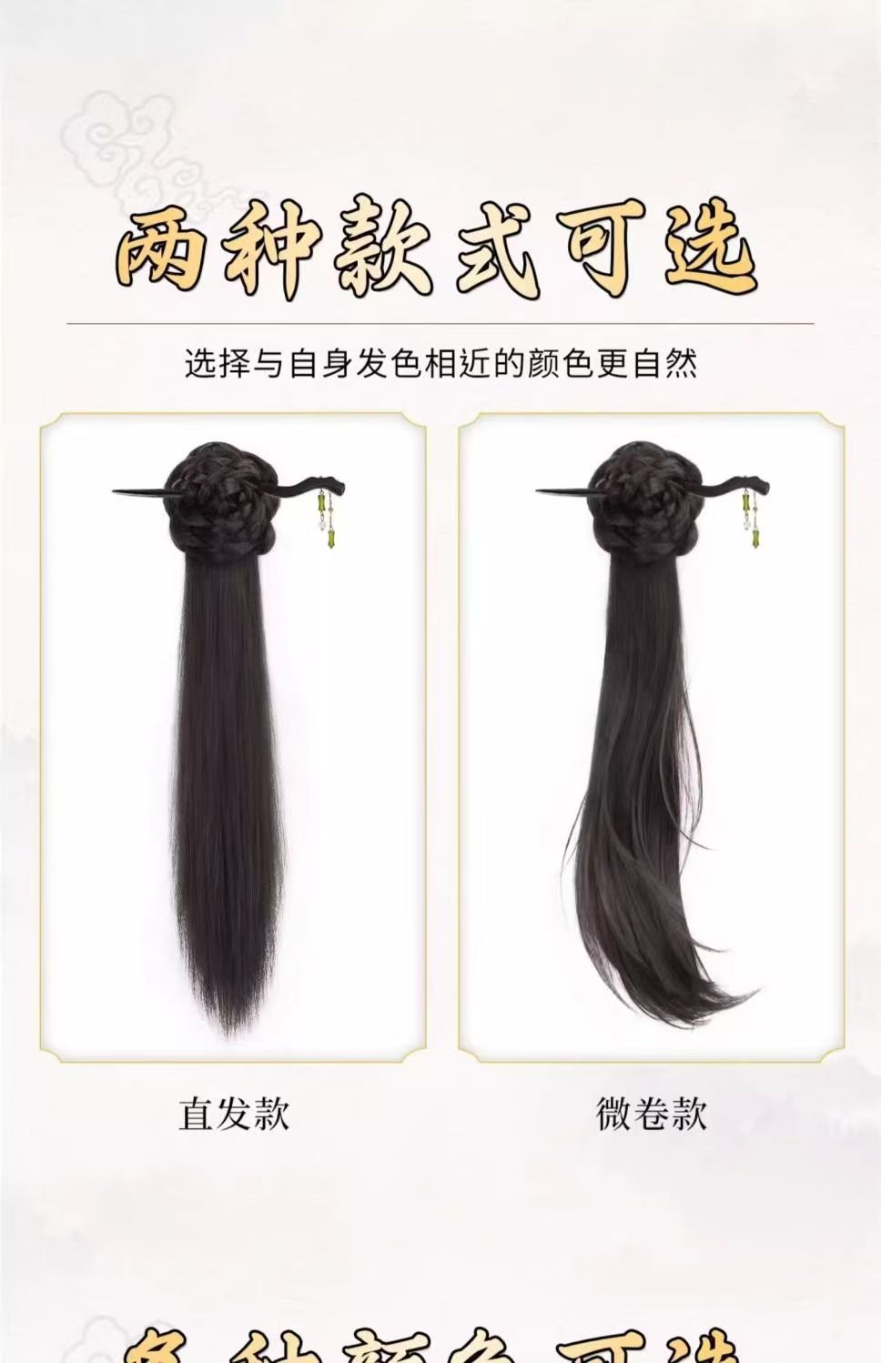 bamboo stick chinese style bud slightly curled ponytail-brown-black