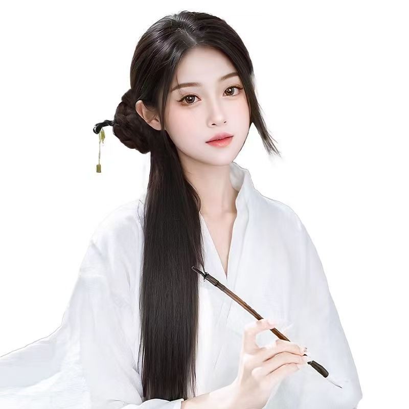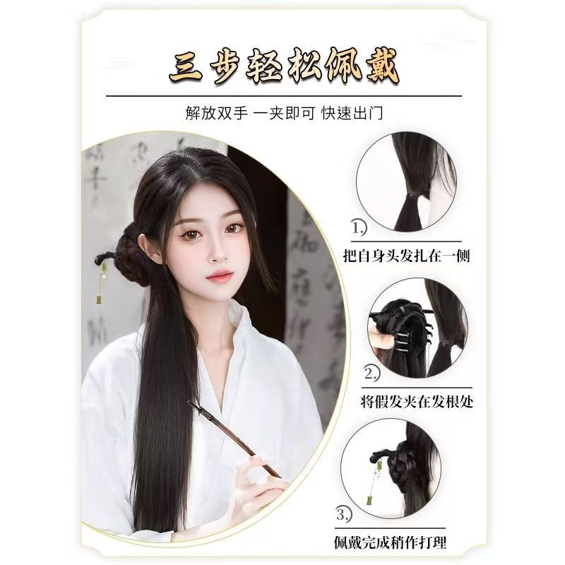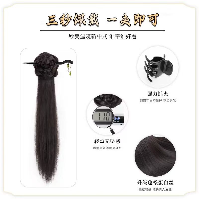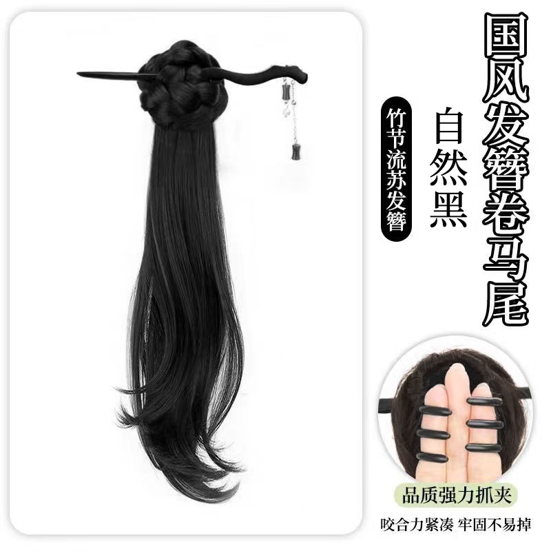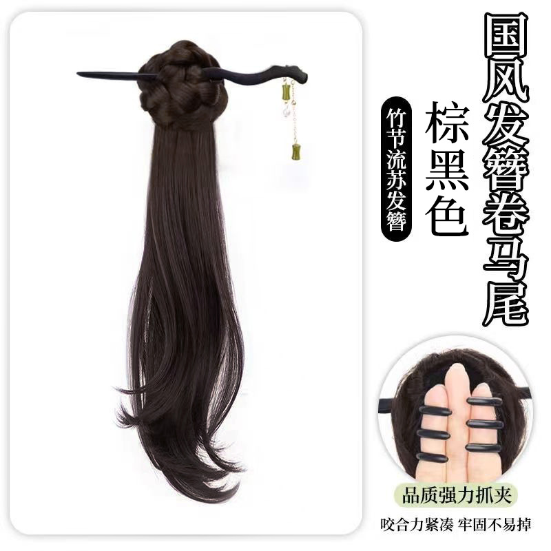bamboo stick national style bud straight ponytail-brown black